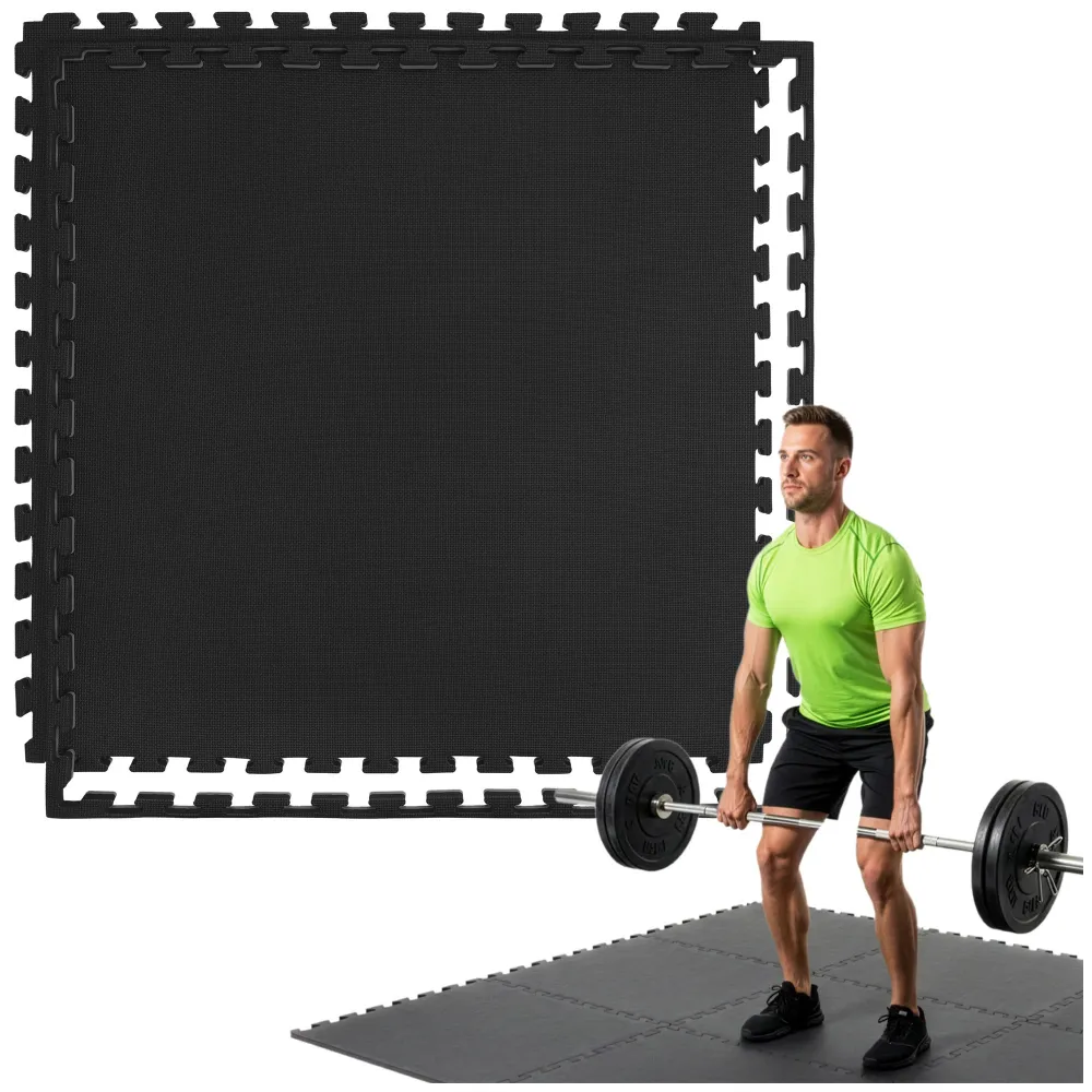 Podložka 100 × 100 cm vytvorí pevný základ pre ľahké aj intenzívne cvičenie doma. Ideálna pod lavicu, stojan na činky alebo menšiu tréningovú zónu. 2 cm hrubá EVA pena. Protišmykový povrch. Účinné tlmenie nárazov a hluku. Spoľahlivá ochrana podlahy pri cvičení s činkami. Certifikát CE. Jednoduchá údržba.