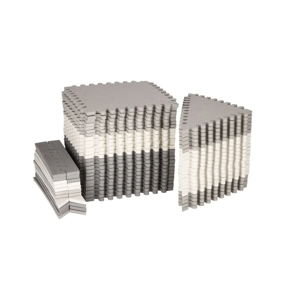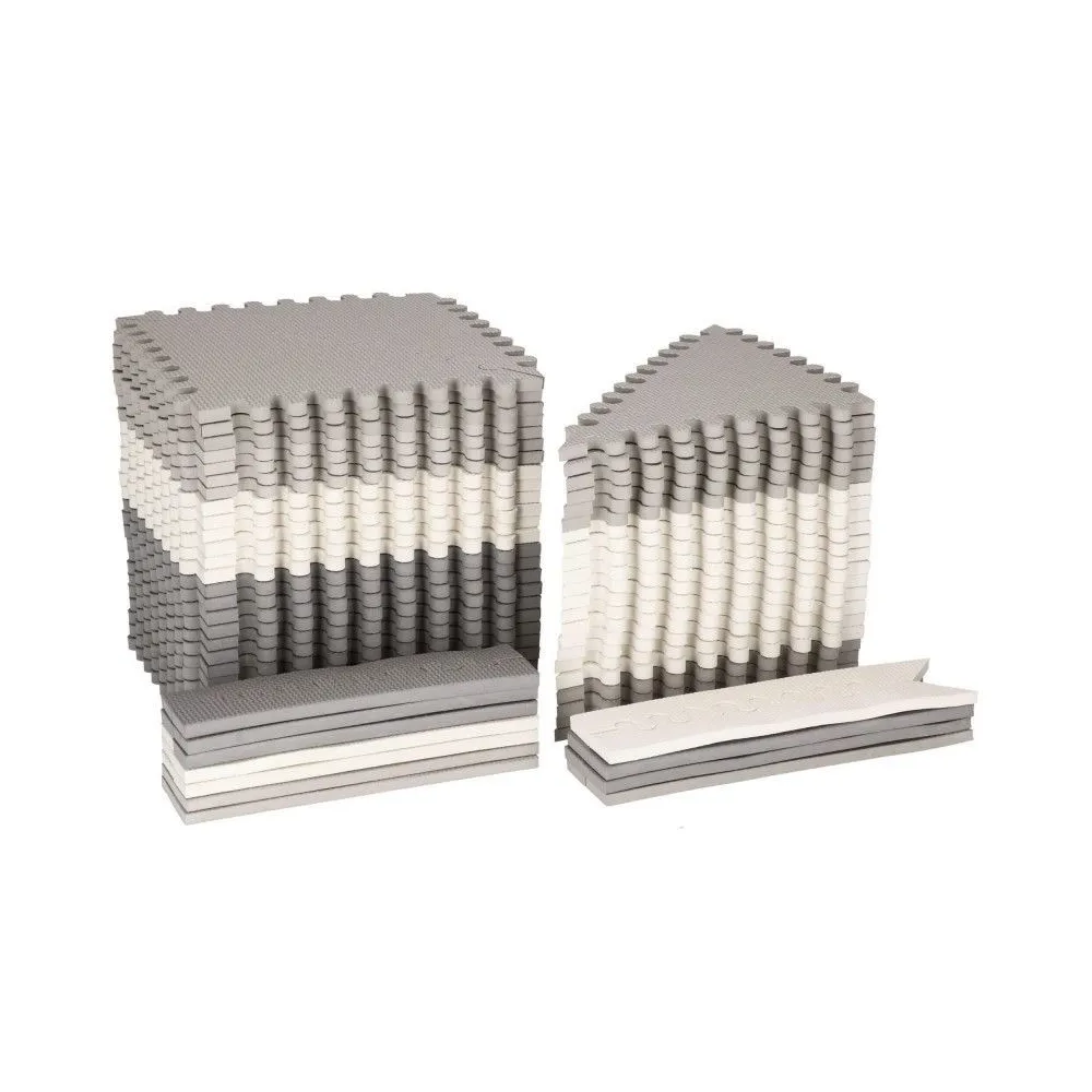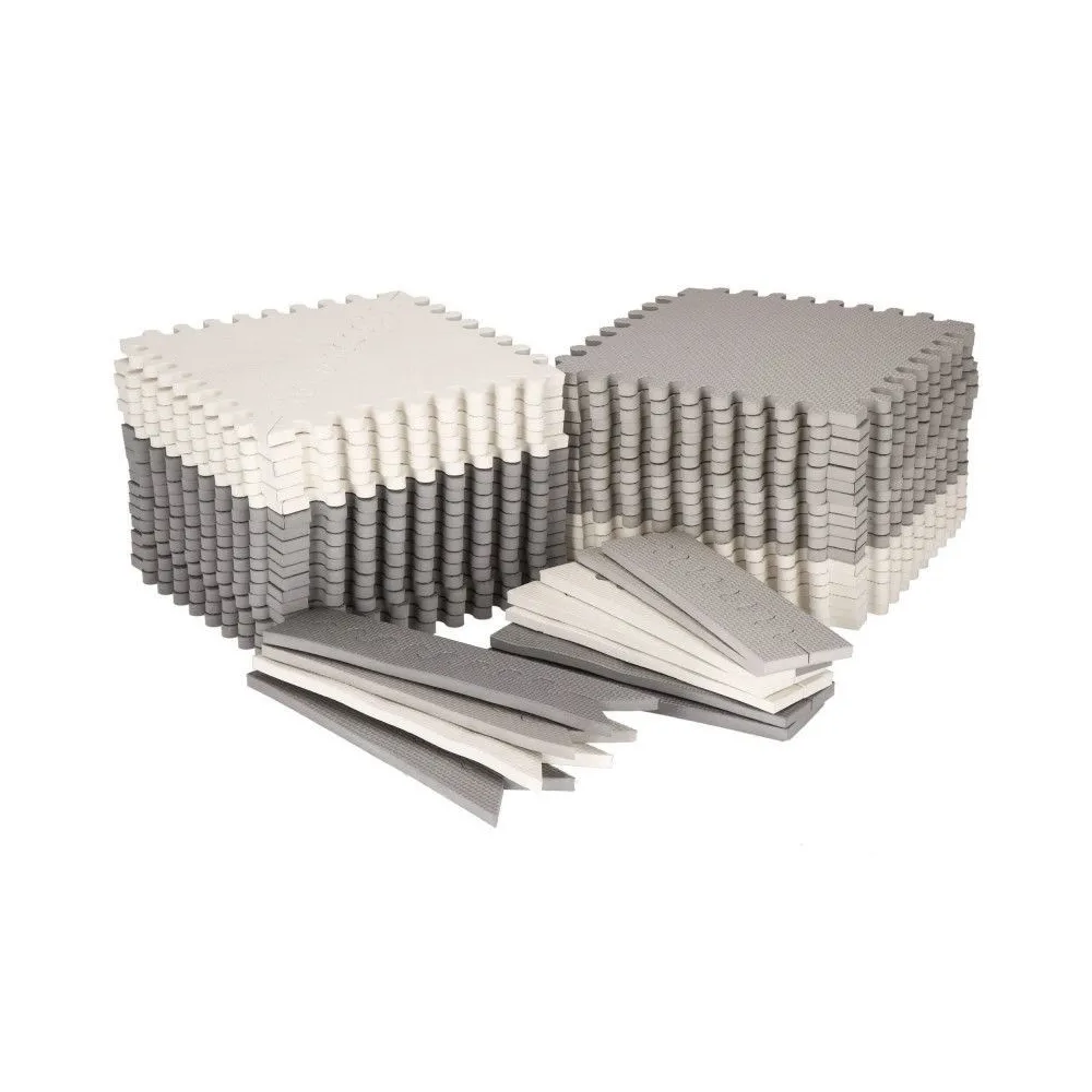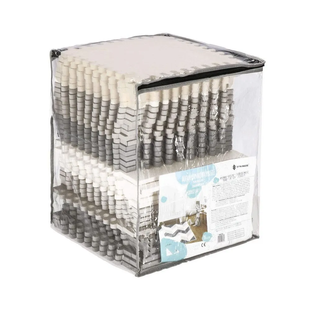 Penová podložka SPRINGOS je vo forme puzzle, každá o veľkosti 32x32 cm. Celkový počet unikátnych dielov je 96, samotných puzzle častí potom 72, každá s hrúbkou 1 cm. Pri rozložení všetkých dielov získate celkový rozmer 186x186 cm. V odtieňoch šedej a bielej, s protišmykovým povrchom , vyrobené z kvalitného materiálu, získate veľký priestor na cvičenie, posilňovanie, jogu alebo fitness, rovnako tak ju môžete použiť ako hrací a bezpečný priestor pre vaše dieťa.