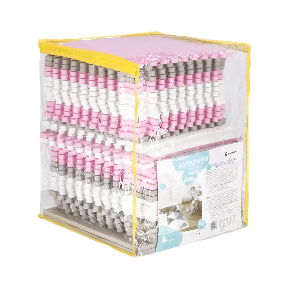 Penová podložka SPRINGOS je vo forme puzzle, každá o veľkosti 32x32 cm. Celkový počet unikátnych dielov je 96, samotných puzzle častí potom 72, každá s hrúbkou 1 cm. Pri rozložení všetkých dielov získate celkový rozmer 186x186 cm. V odtieňoch bielej, šedej a ružovej, s protišmykovým povrchom , vyrobené z kvalitného materiálu, získate veľký priestor na cvičenie, posilňovanie, jogu alebo fitness, rovnako tak ju môžete použiť ako hrací a bezpečný priestor pre vaše dieťa.