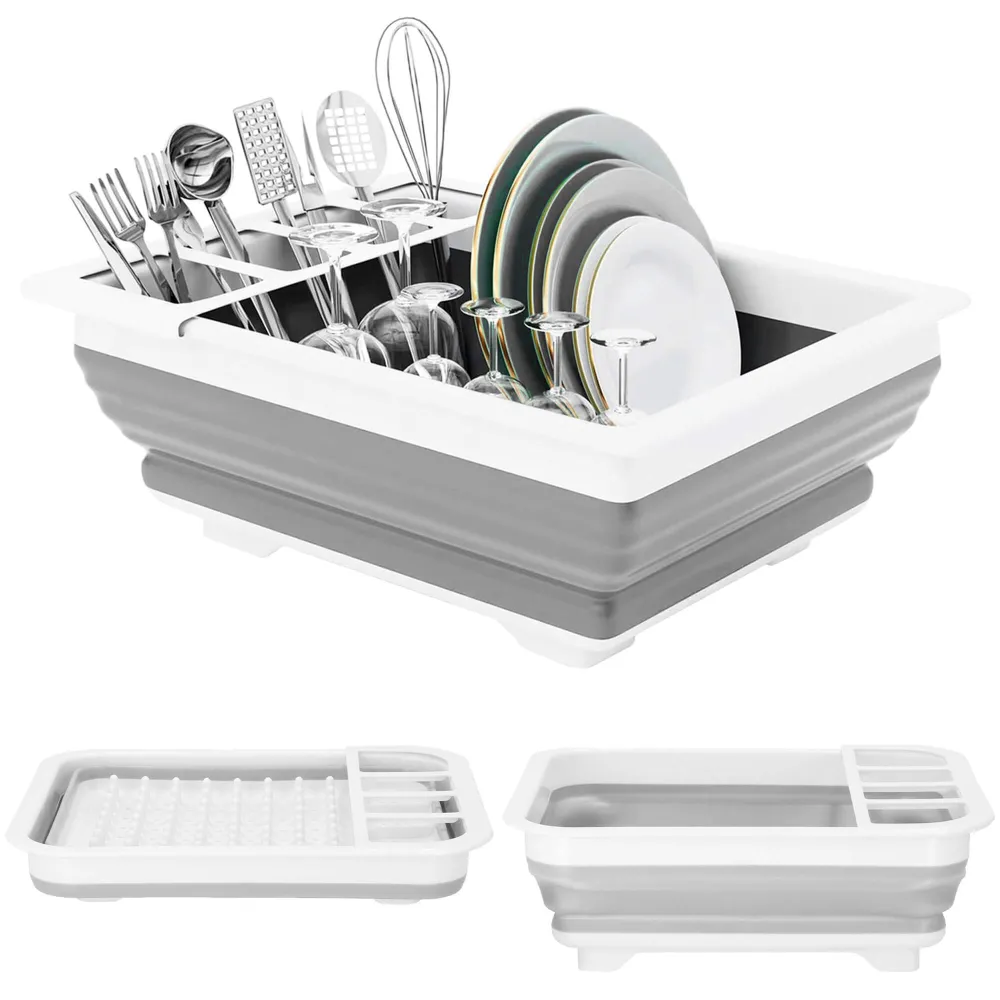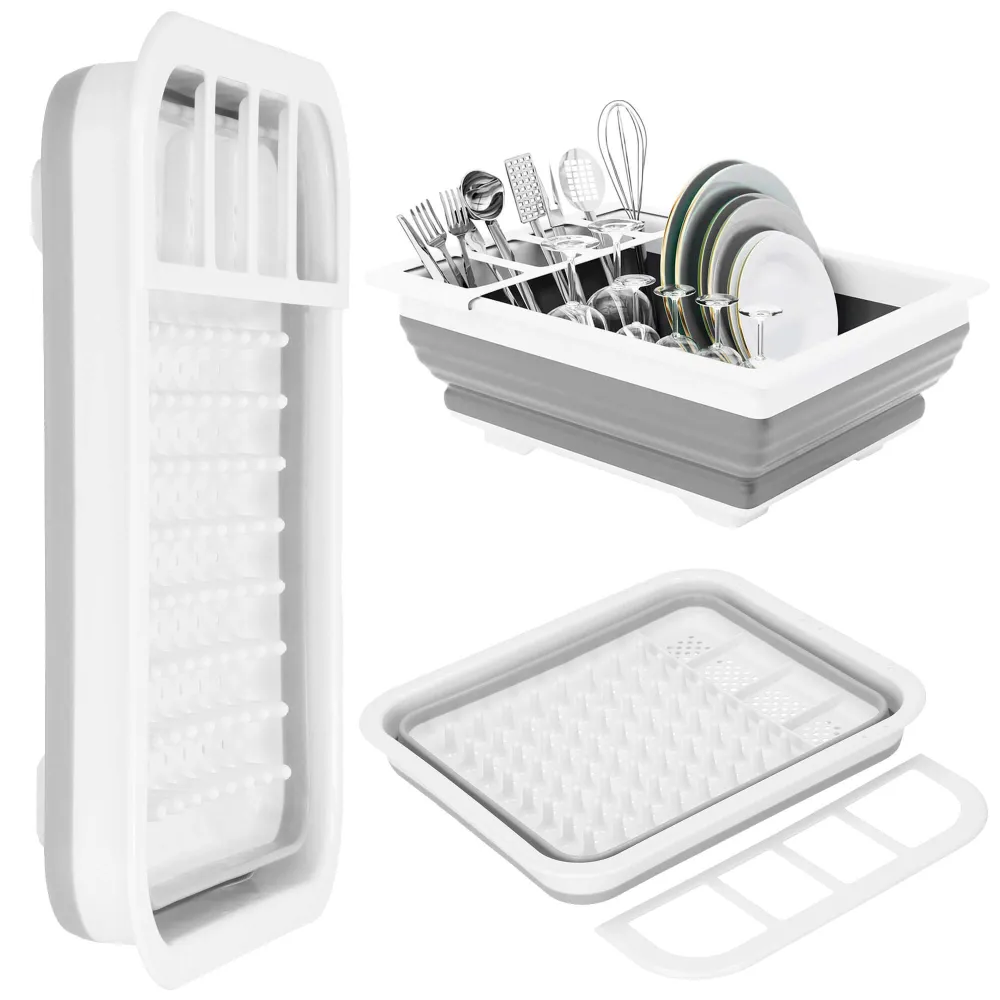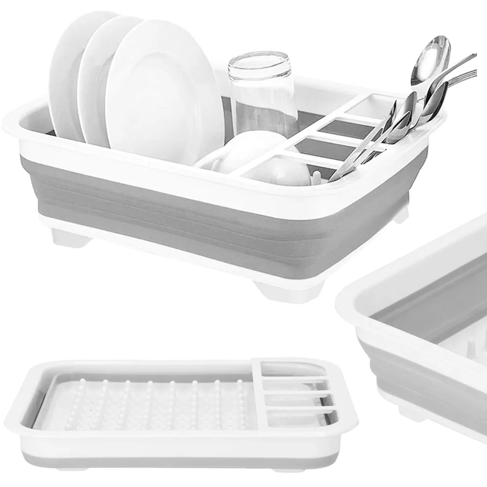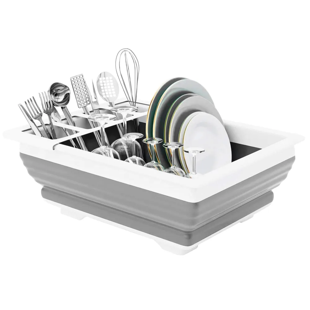 Základné informácie: Značka: Springos®. Farba; svetlo šedá; biely. Materiál: plast. Rozmery sušičky v rozloženom stave: Dĺžka: 36 cm. Šírka: 30,8 cm. Výška: 12 cm. Rozmery sušiaku naplocho: Dĺžka: 36 cm. Šírka: 30,8 cm. Výška: 5 cm. Sušička vybavená 4 menšími priehradkami a 1 väčšia. Dodatočný plastový nástavec namontovaný pomocou západiek so 4 priehradkami. Počet západiek na predĺženie: 8. Dodatočné informácie: Spodná časť sušičky je vybavená drenážnymi otvormi.
