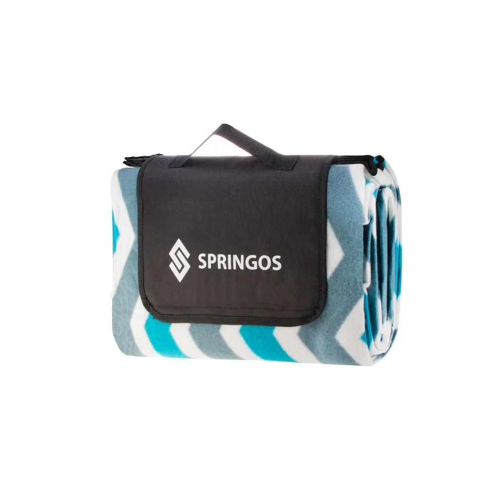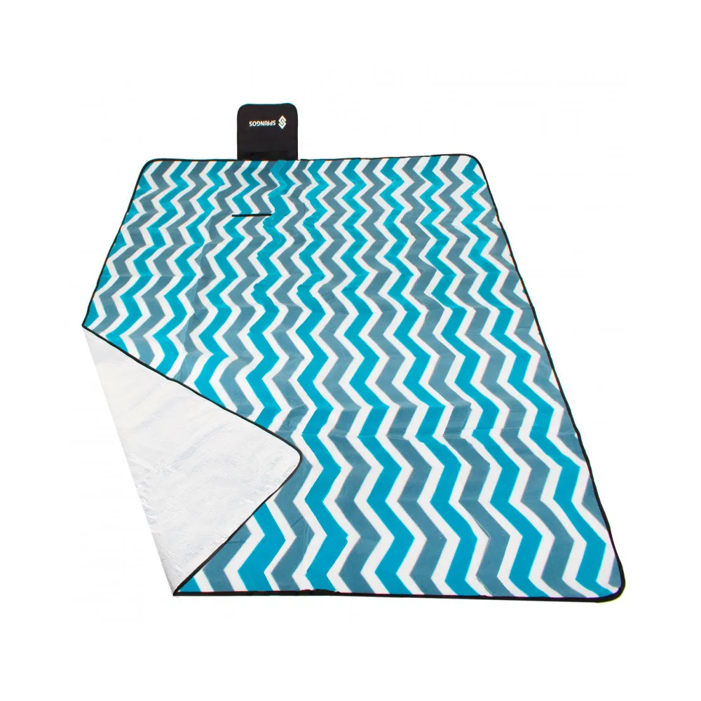 Deka Springos Waves je ľahko zložiteľná, vybavená zapínaním na suchý zips a uchom pre ľahké prenášanie. Ľahkú piknikovú deku si môžete vziať kamkoľvek so sebou a užiť si piknik s rodinou alebo priateľmi.