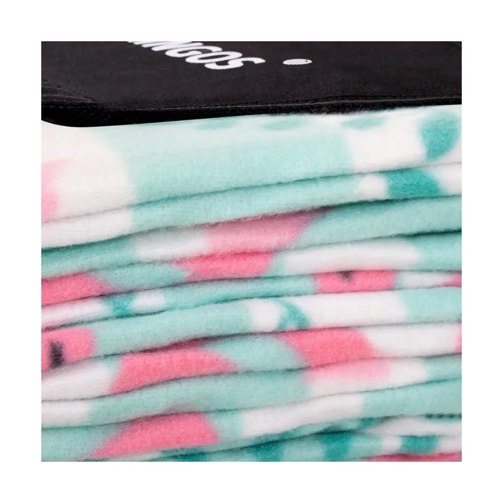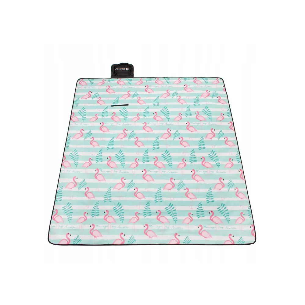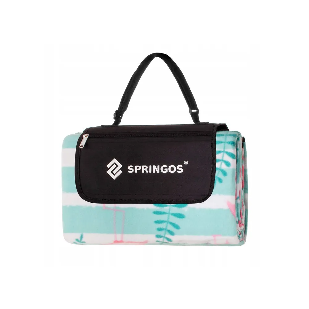Deka Springos Flamingo je ľahko zložiteľná, vybavená zapínaním na suchý zips a nastaviteľným popruhom pre ľahké prenášanie. Nechýba vrecko na zips na uloženie drobných vecí.