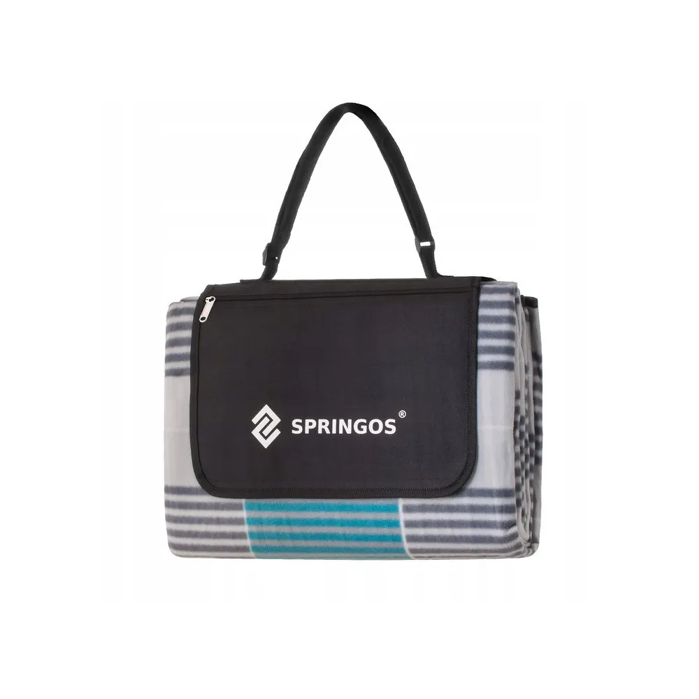 Deka Springos Lines je ľahko zložiteľná, vybavená zapínaním na suchý zips a nastaviteľným popruhom pre ľahké prenášanie. Nechýba vrecko na zips na uloženie drobných vecí.