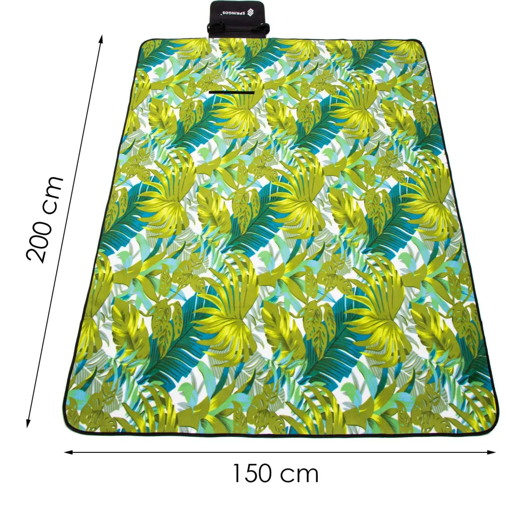 Pikniková deka 200x150 cm, zelená s listami SPRINGOS PM040