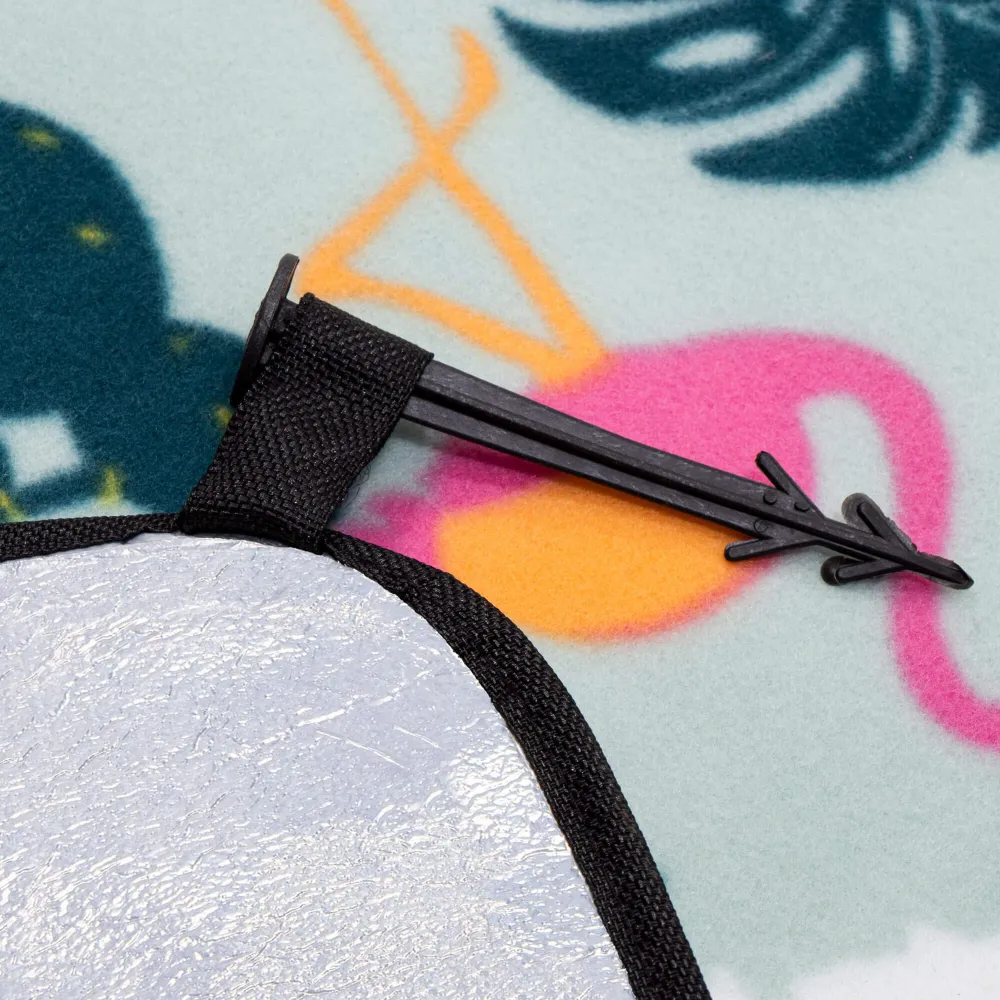 Deka na piknik s praktickým vreckom na zips a výškovo nastaviteľným popruhom na prenášanie. Spodná hliníková vrstva chráni pred vlhkosťou. Možnosť pripevniť k zemi pomocou kolíkov. Deka je vďaka hebkému materiálu veľmi pohodlná a príjemná na dotyk. Skvele sa bude hodiť na piknik s rodinou alebo priateľmi, využiť ju môžete na pláži, kúpalisku alebo na záhrade. Rozmery 150x200 cm.