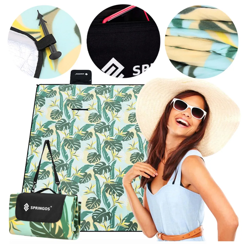 Pikniková deka 200x150 cm, zelená s listami SPRINGOS PM040