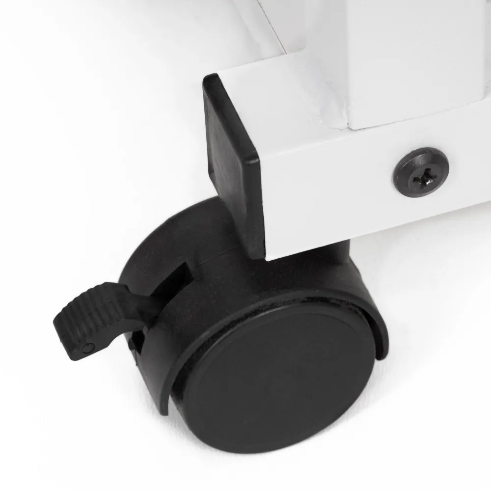 Stôl je vybavený 2 spodnými policami , ktoré ponúkajú ďalší úložný priestor pre dokumenty, boxy, doplnky aj dekorácie a pomáhajú udržať poriadok v miestnosti. Pogumované kolieska chránia podlahu pred poškriabaním a vďaka aretácii kolies zostáva stôl pevne na svojom mieste. S nosnosťou až 20 kg ľahko zvládne notebook, organizéry aj ďalšie bežné vybavenie. Konštrukcie a materiály sú navrhnuté s dôrazom na stabilitu, praktickosť a každodenný komfort bez kompromisov.
