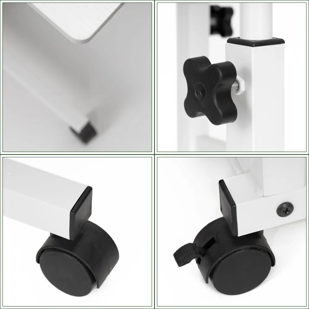 Hlavnou výhodou sú otočné kolieska s aretáciou , ktoré umožňujú ľahké presúvanie a zároveň bezpečné zastavenie na mieste . Výškovo nastaviteľné prevedenie v rozmedzí 76–86 cm poskytuje flexibilitu prispôsobenia podľa potreby – pri práci, prezentácii aj pohodlnom odložení vecí vedľa pohovky či postele. Výrazná úspora času bez montáže , mobilita a možnosť okamžitej zmeny umiestnenia z neho robia ideálne riešenie najmä do menších aj multifunkčných priestorov, kde záleží na každom centimetri.