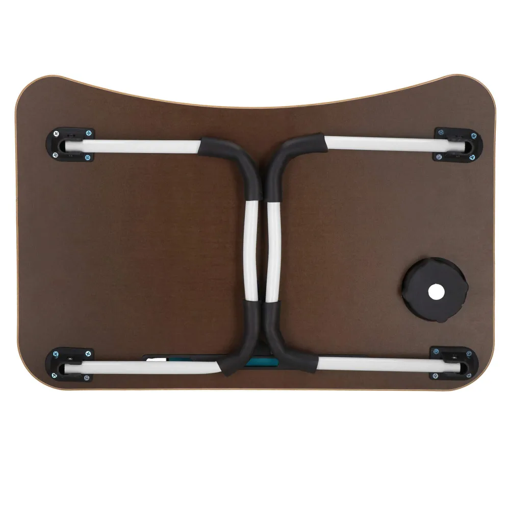 Skladný stolík ideálny na prácu s notebookom z postele, pohovky aj podlahy. Tvarovaná doska ponúka pohodlnú pracovnú plochu, otvor na nápoj a drážku pre tablet či telefón. Stabilné sklopné nohy uľahčujú skladovanie a prenášanie. Vhodný na prácu, štúdium i sledovanie filmov v pohodlí domova.