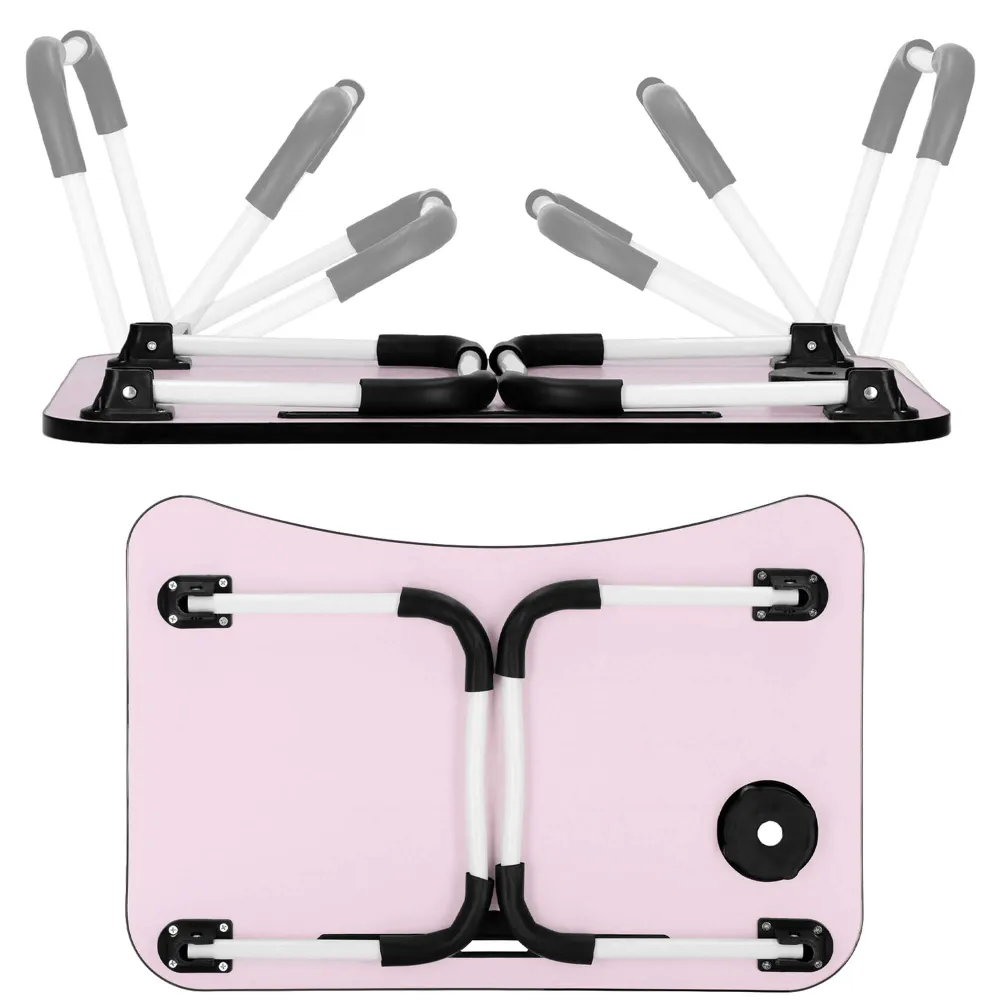 Súčasťou dosky je otvor pre hrnček a drážka na tablet alebo telefón , takže máte všetko potrebné vždy po ruke. Mäkké penové prvky na nohách chránia povrch pred poškriabaním a zabraňujú kĺzaniu, zatiaľ čo stabilná konštrukcia zaisťuje bezpečné používanie pri práci, štúdiu i odpočinku.
