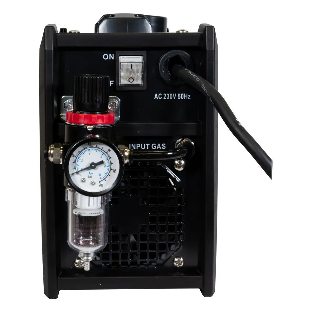 Základný model plazmovej rezačky pre všetkých domácich majstrov a remeselníkov, ktorí sa venujú plazmovému rezaniu. V kombinácii s kompresorom s minimálnym prietokom 150 litrov za minútu je možné rezať plechy a oceľ s maximálnou hrúbkou 12 mm bez námahy a rýchlo. Bez problémov je možné spracovať aj iné materiály, ako hliník, meď, mosadz alebo nehrdzavejúca oceľ, a to aj ručným rezaním. Kompatibilný s Pantografom pre plazmovú rezačku (kód tovaru: 20068). Pomocou vhodnej šablóny je možné kopírovať a vyrezať kreatívne tvary z papierovej predlohy alebo šablóny na plech. Vysokofrekvenčná plazmová rezačka 15 – 40 A, 2,5 metrový rezací horák, uzemňovací kábel (zásuvková prípojka 9 mm), zariadenie na redukciu tlaku s manometrom, prívodom stlačeného vzduchu a odlučovačom vody, 2 súpravy náhradných trysiek.
