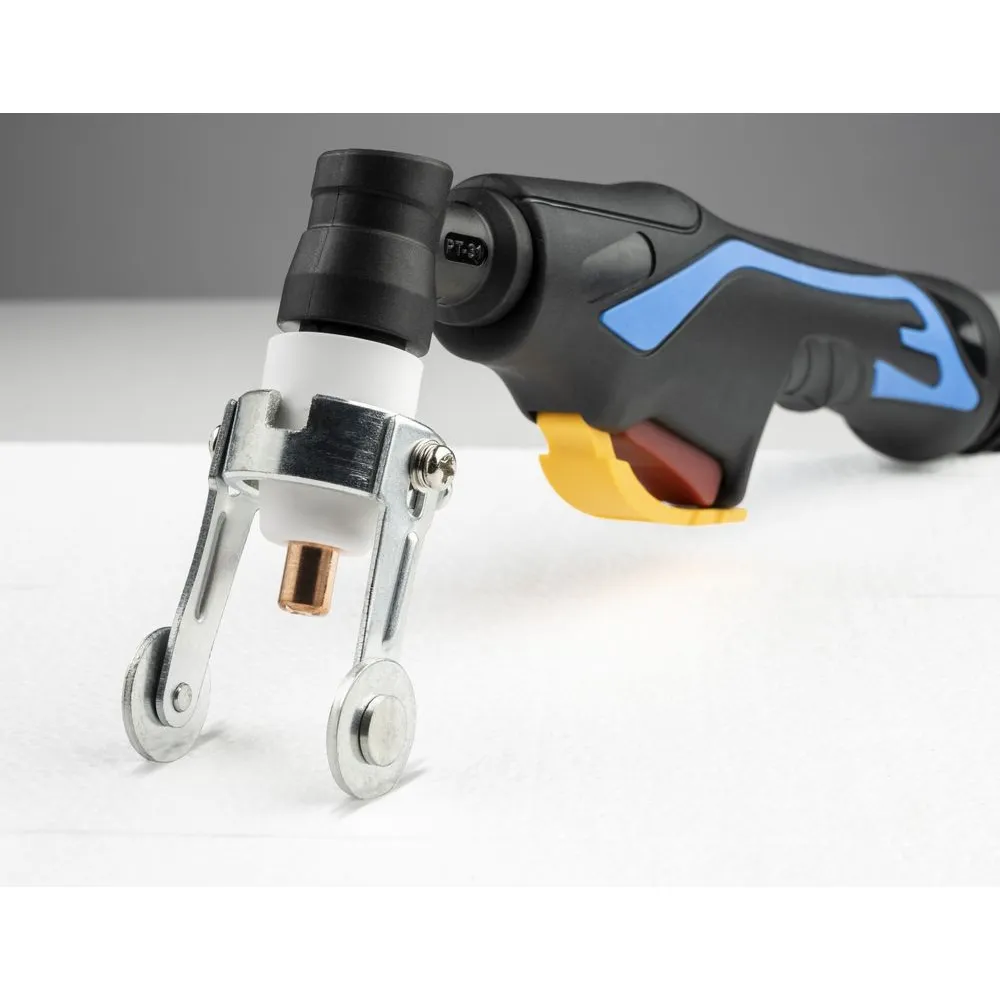 Vysokofrekvenčná plazmová rezačka s integrovaným kompresorom je možné použiť stacionárne v dielni aj mobilne pri montáži. Maximálna hrúbka rezaného materiálu 12 mm. Rezací horák 2,5 ms valčekovým vedením.