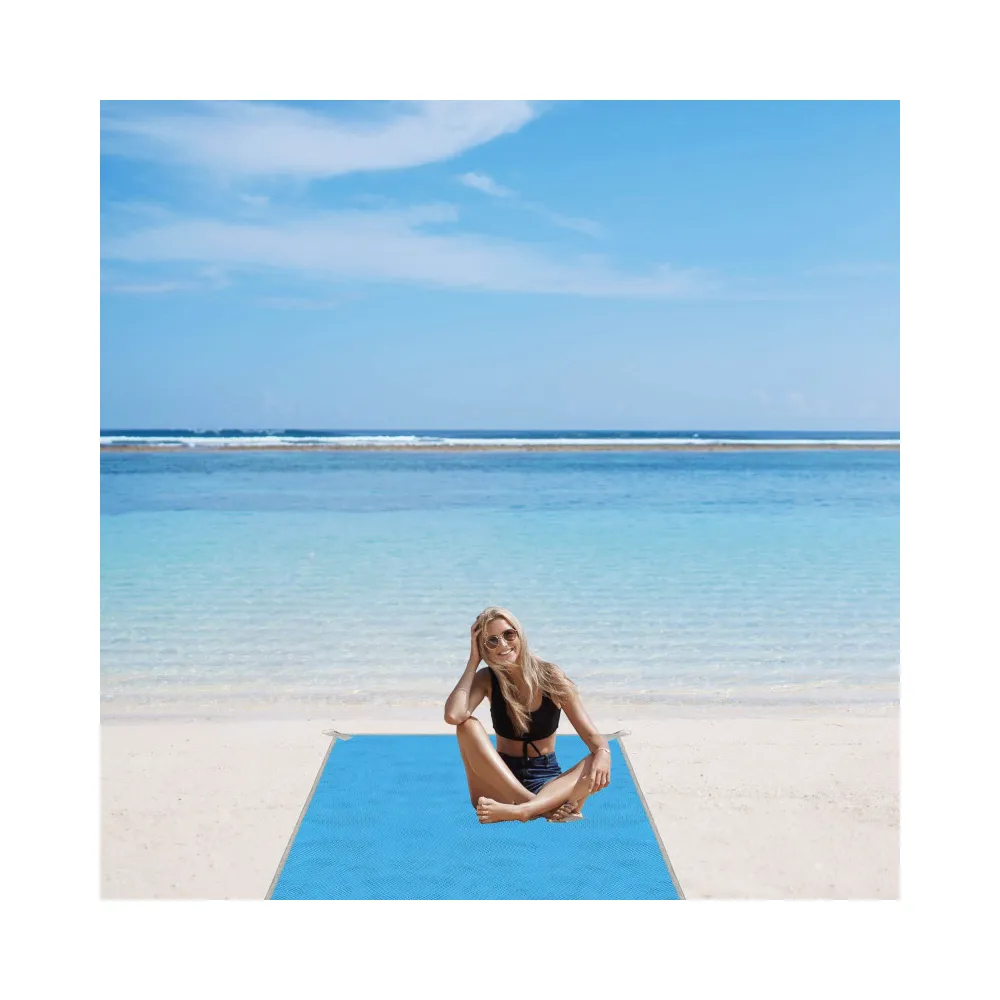 Sieťovaná plážová deka s funkciou jednoduchého čistenia mávnutím ruky. Kvalitný materiál odolný proti roztrhnutiu, po stranách zosilnený lemovaním, neabsorbuje vlhkosť. V rohoch pútka pre ľahké uchytenie. Ideálna na pláž, k jazeru, na piknik alebo kempovanie. Rodinná veľkosť 200x150 cm.