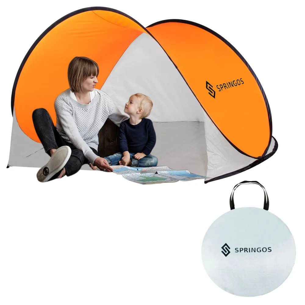 Samorozkladací plážový stan SPRINGOS TEXAS oranžovo-sivý