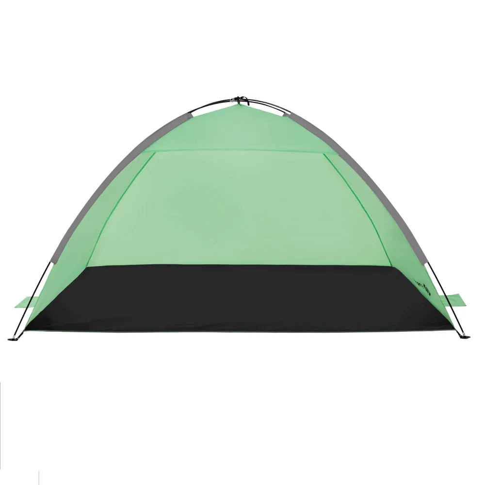 Ľahký a praktický samorozkladací stan ideálny na pláž. Poskytuje ochranu proti UV žiareniu aj dažďu vďaka vodeodolnému materiálu. Otvorený dizajn zaisťuje cirkuláciu vzduchu. Stabilitu zaisťuje pevná sklolaminátová konštrukcia, kolíky a upevňovací povrázok. Ľahko a rýchlo sa skladá, má kompaktné rozmery a nízku hmotnosť na pohodlné prenášanie. Rozmery 210x120x112 cm (šxhxv), hmotnosť iba 1 kg.