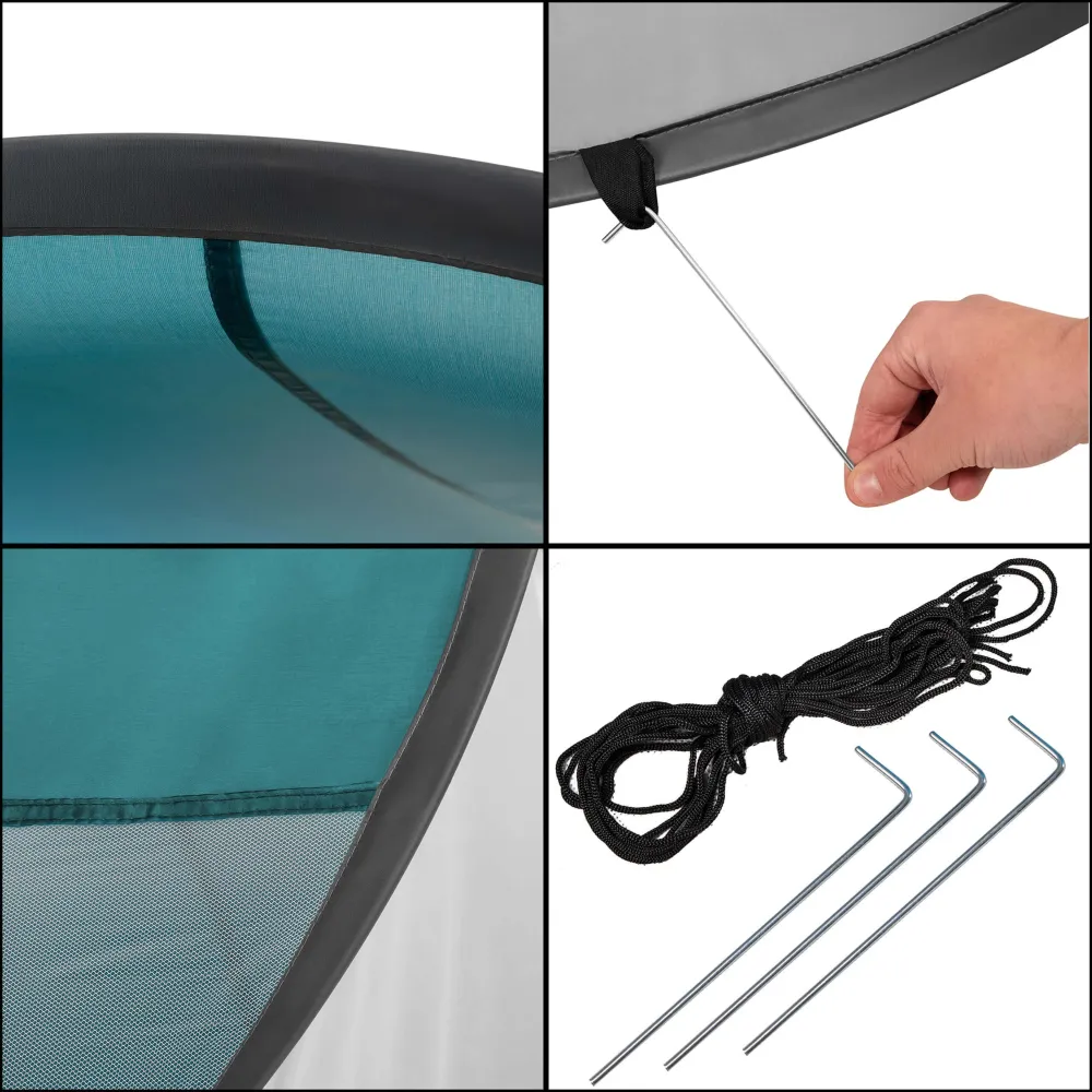 Vďaka svojej nízkej hmotnosti je veľmi ľahký a skladný , ľahko sa prenáša v praktickom kryte s rukoväťou na prenášanie . Pre zaistenie stability v teréne sú súčasťou balenia kovové kolíky a upevňovacia šnúrka . SPRINGOS TEXAS poskytuje dokonalú ochranu pred slnkom aj vetrom a je skvelou voľbou pre každého, kto hľadá jednoduchý a funkčný letný prístrešok.