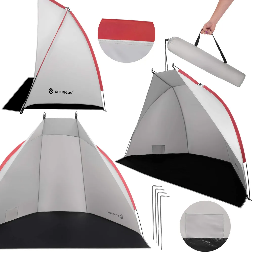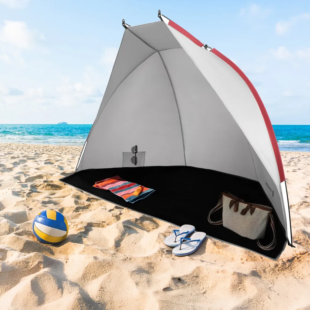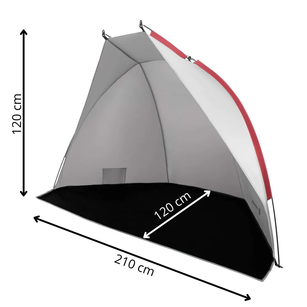 Ľahký a skladný plážový stan so sklolaminátovou konštrukciou, veľkorysé rozmery 210×120×120 cm. Chráni pred slnkom, vetrom i vlhkosťou, má vodeodolnú podlahu, UV filter a vnútorné vrecko na drobnosti.
