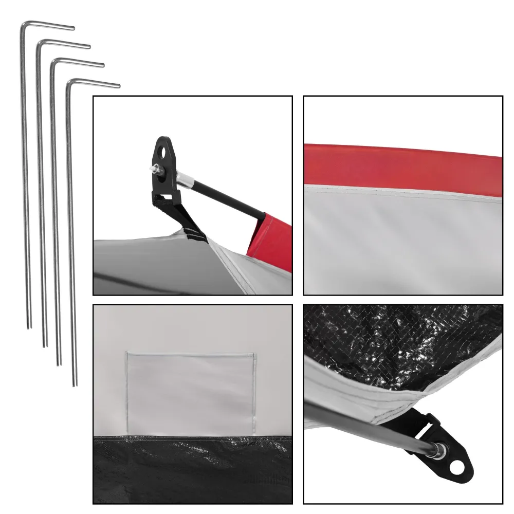 Stan je vybavený vodeodolnou podlahou , integrovaným UV filtrom a vnútorným vreckom na uloženie drobností . Stabilitu zaisťuje odolná sklolaminátová konštrukcia a kovové kolíky pre upevnenie do zeme.