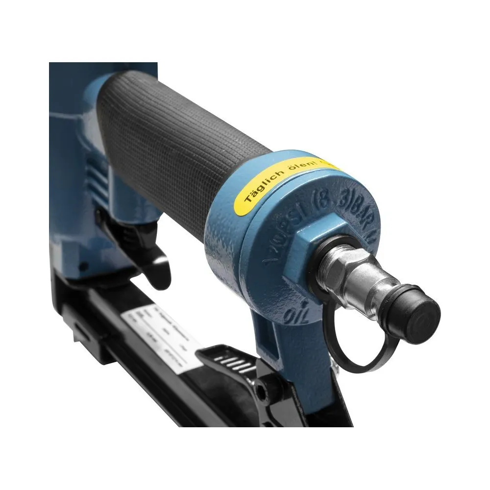 Pneumatická sponkovačka a klincovačka v kufríku, bezpečnostná poistka, fľaštička na olej, 2 kľúče na šesťhranné matice, 200 ks zošívacích...