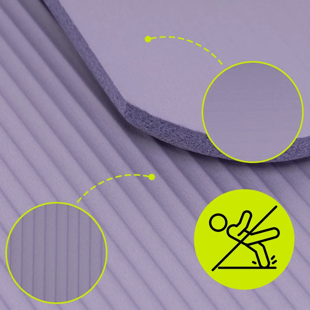 Podložka na cvičenie 183x61 cm 15mm NBR ACTIGET ACT0017 fialová je navrhnutá pre maximálne pohodlie pri tréningu. Extra silná hrúbka 15 mm zaisťuje výborné tlmenie nárazov a chráni kĺby aj chrbticu. Mäkký, ale pevný NBR materiál poskytuje stabilnú oporu pri cvičení, joge aj pilates a vďaka protišmykovému povrchu drží spoľahlivo na mieste.