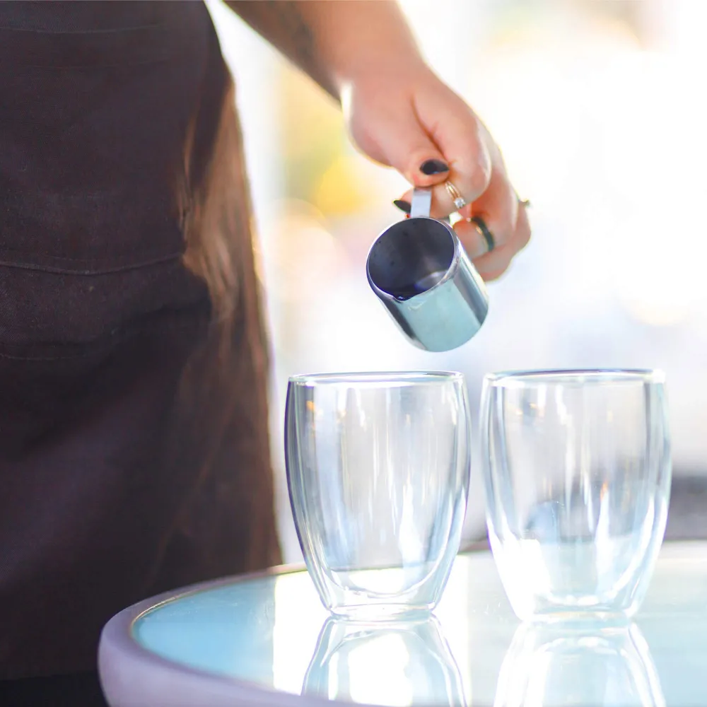 Objem 350 ml je perfektný na servírovanie latte, cappuccina alebo čaju, a priehľadné kvalitné sklo zároveň umožňuje esteticky vyniknúť jednotlivým vrstvám nápoja, čo z každej šálky robí nielen chuťový, ale aj vizuálny zážitok.