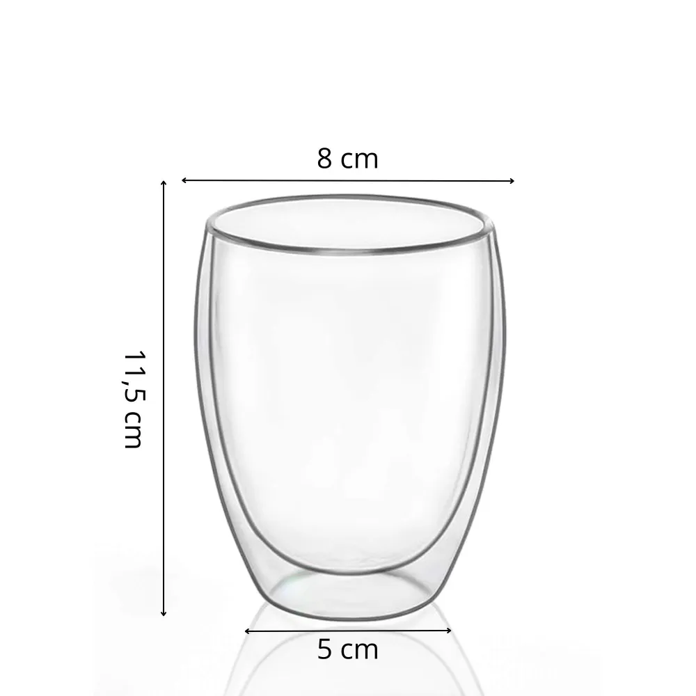 Dvojstenný termo pohár s objemom 350 ml je ideálnou voľbou pre štýlové podávanie vašej obľúbenej kávy. Vďaka kvalitnému sklu a dvojitej stene zostáva nápoj dlhšie teplý či studený, zatiaľ čo vonkajší povrch zostáva chladný. vkusný darček.