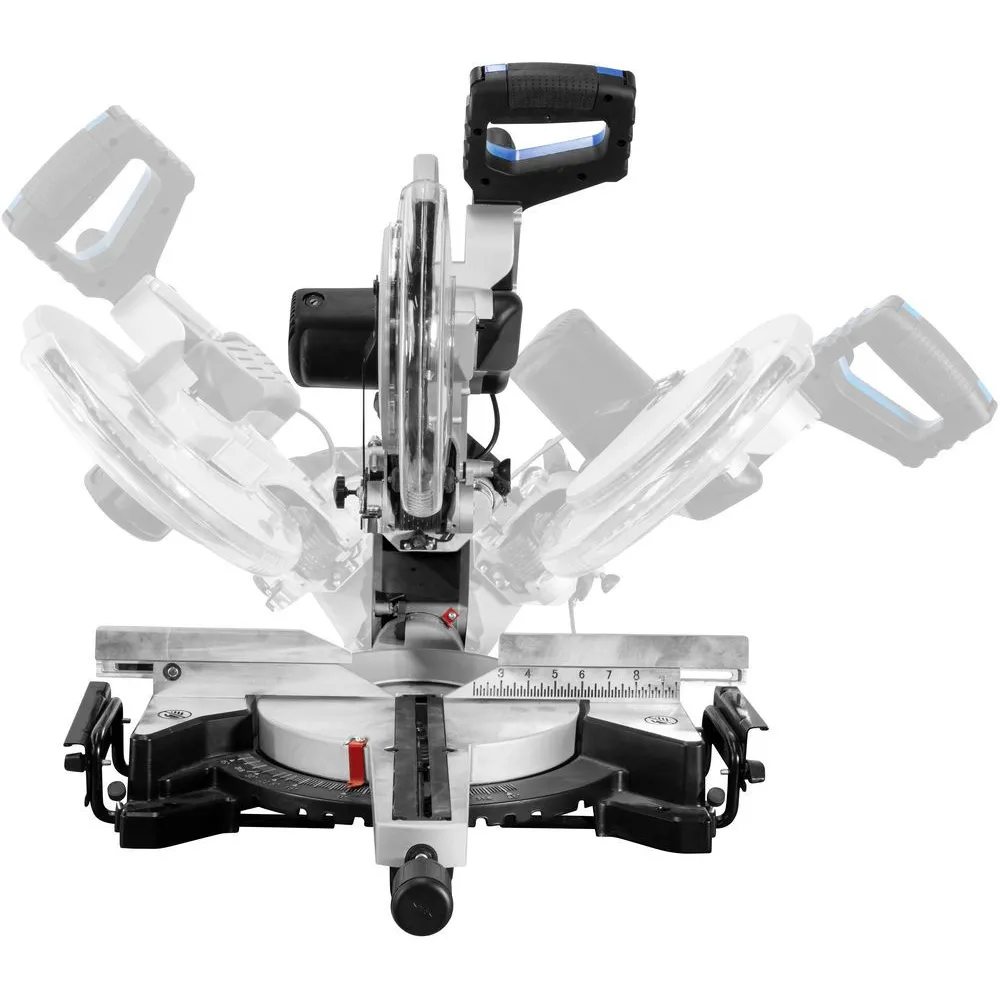 Radiálna kapovacia píla s remeňovým pohonom, radiálne vedenie uložené v guličkových ložiskách, široký pracovný stôl, vysoký hliníkový doraz, s laserovým vedením na presnú prácu, obojstranne otočná pílová hlava, svorka na uchytenie obrobku.