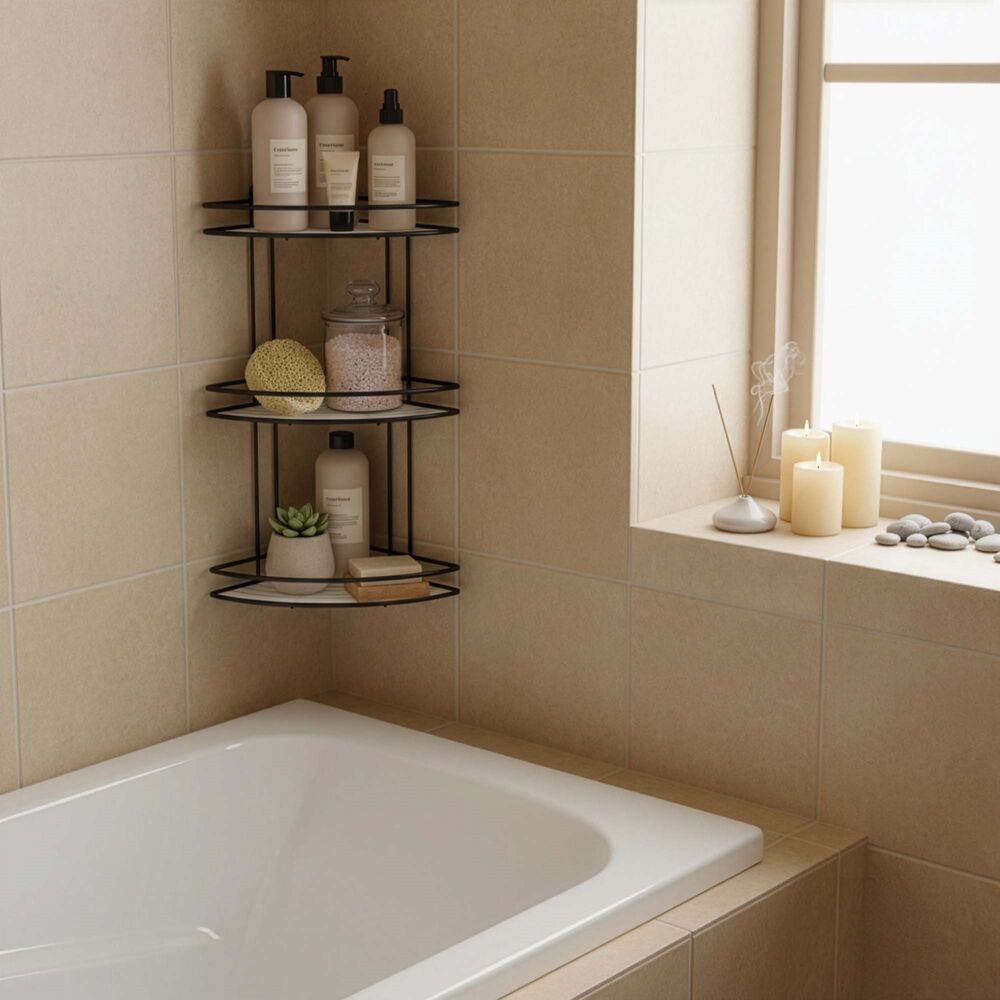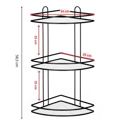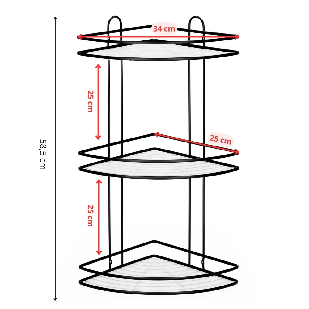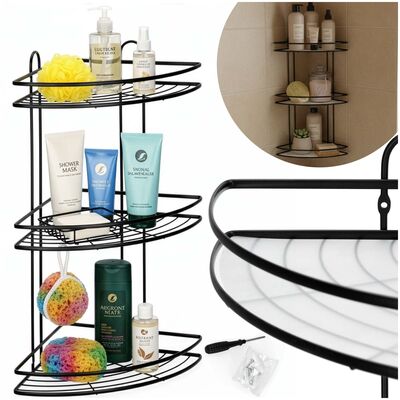 Čierna rohová polička je praktickým riešením na efektívne využitie priestoru v kúpeľni. Ponúka tri úrovne na uloženie kozmetiky, sprchových prípravkov i drobných doplnkov. Odolná kovová konštrukcia pôsobí elegantne a otvorený design umožňuje rýchle odvetrávanie a schnutie. Ochranné hrany zaistia, že uložené predmety zostanú bezpečne na svojom mieste, a jednoduchá montáž uľahčí inštaláciu.