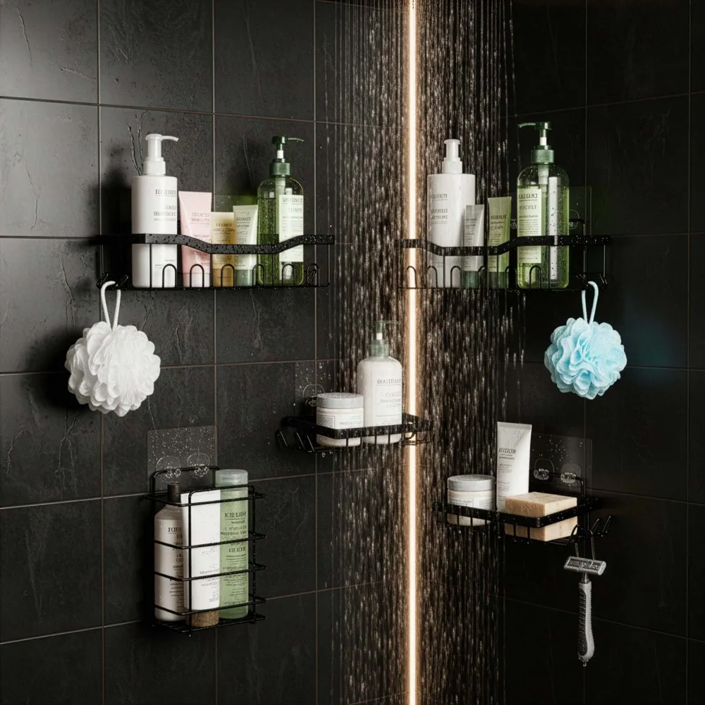 Poličky do kúpeľne 5ks SPRINGOS HA7544 čierne prinášajú praktické a elegantné riešenie na usporiadanie všetkých potrieb v kúpeľni. Každá polica je vyrobená z kvalitnej nerezovej ocele a opatrená matnou čiernou povrchovou úpravou, ktorá pôsobí moderne a zároveň sa ľahko kombinuje s rôznymi štýlmi interiéru. Vďaka rôznej veľkosti jednotlivých políc ponúka sada flexibilné možnosti usporiadania a umožňuje uložiť kozmetiku, čistiace prostriedky či doplnky podľa vašich potrieb. Jednoduchá inštalácia bez vŕtania , pevné samolepiace držiaky a stabilná konštrukcia zaisťujú spoľahlivú funkčnosť aj dlhú životnosť.