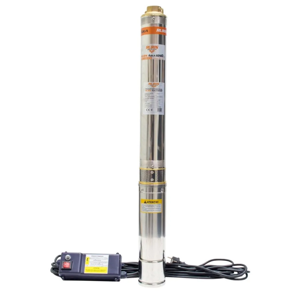 Ponorné čerpadlo RURIS Aqua 1090 je viacnásobné turbínové čerpadlo s 15 stupňami . Telo z nehrdzavejúcej ocele a 100% medené vinutie motora v olejovom kúpeli, ovládací panel a 15 m dlhý napájací kábel . Na zásobovanie čistou vodou domácností, chát a podobne. Vhodné pre malé zavlažovacie systémy, čerpanie vody zo studní a nádrží. Bez plaváku.