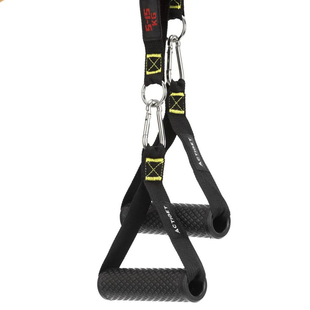 Súčasťou balenia je kompletné príslušenstvo , vrátane rukovätí, popruhov na členky, karabín a háku do dverí , ktoré rozširujú možnosti použitia. Praktický vak na uloženie uľahčuje prenášanie aj skladovanie. Perfektná voľba pre každého, kto chce mať plnohodnotné fitness vybavenie vždy po ruke.