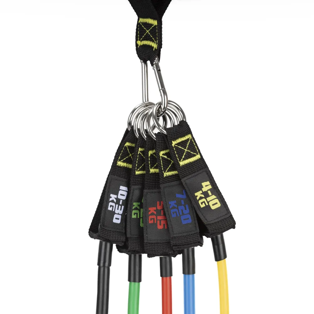 Súprava odporových gúm na posilnenie celého tela a variabilný tréning. Ponúka stovky cvikov na komplexné precvičenie svalov. 5 stupňov odporu pre individuálne prispôsobenie záťaže. Bohaté príslušenstvo vrátane rukovätí, popruhov na členky a dverného háku. Praktický vak pre ľahké uloženie a prenášanie.