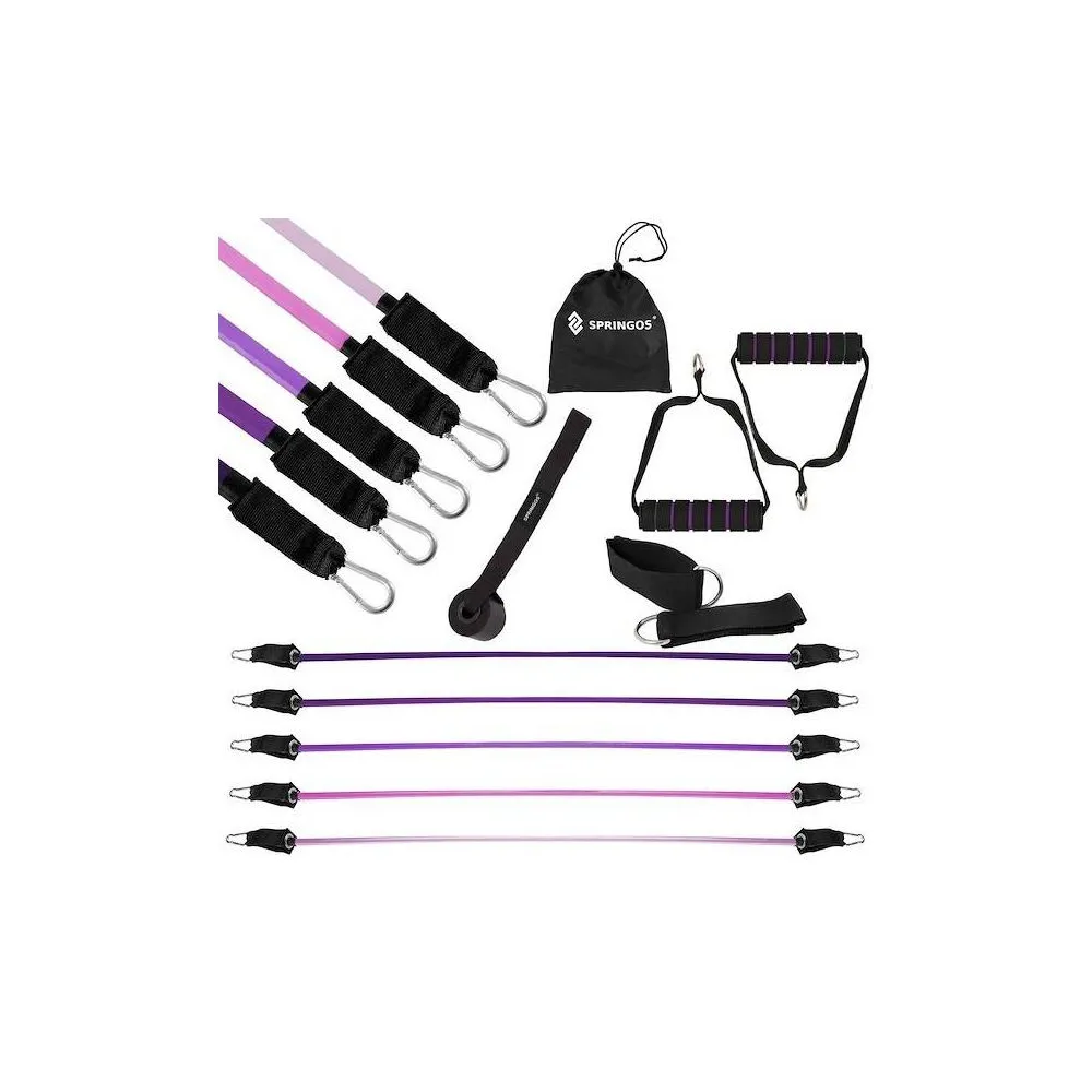 Expandér set SPRINGOS X-TREME je sada 5 odporových gúm, ideálna pre domáci tréning a tvarovanie postavy. Ľahko použiteľné, rôzne sily odporu, variabilné použitie, umiestnené v kompaktnom puzdre, prídavné rukoväte, popruhy, kvalitný materiál.