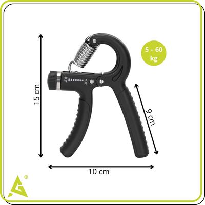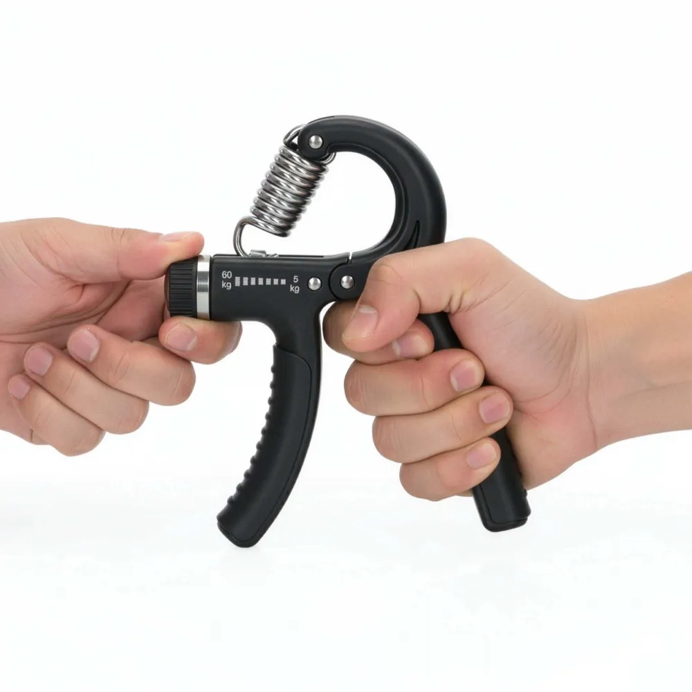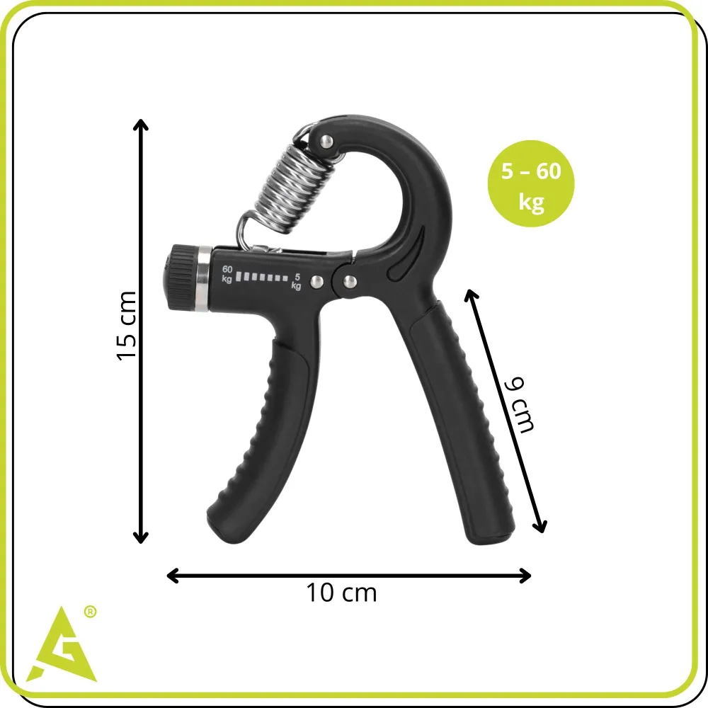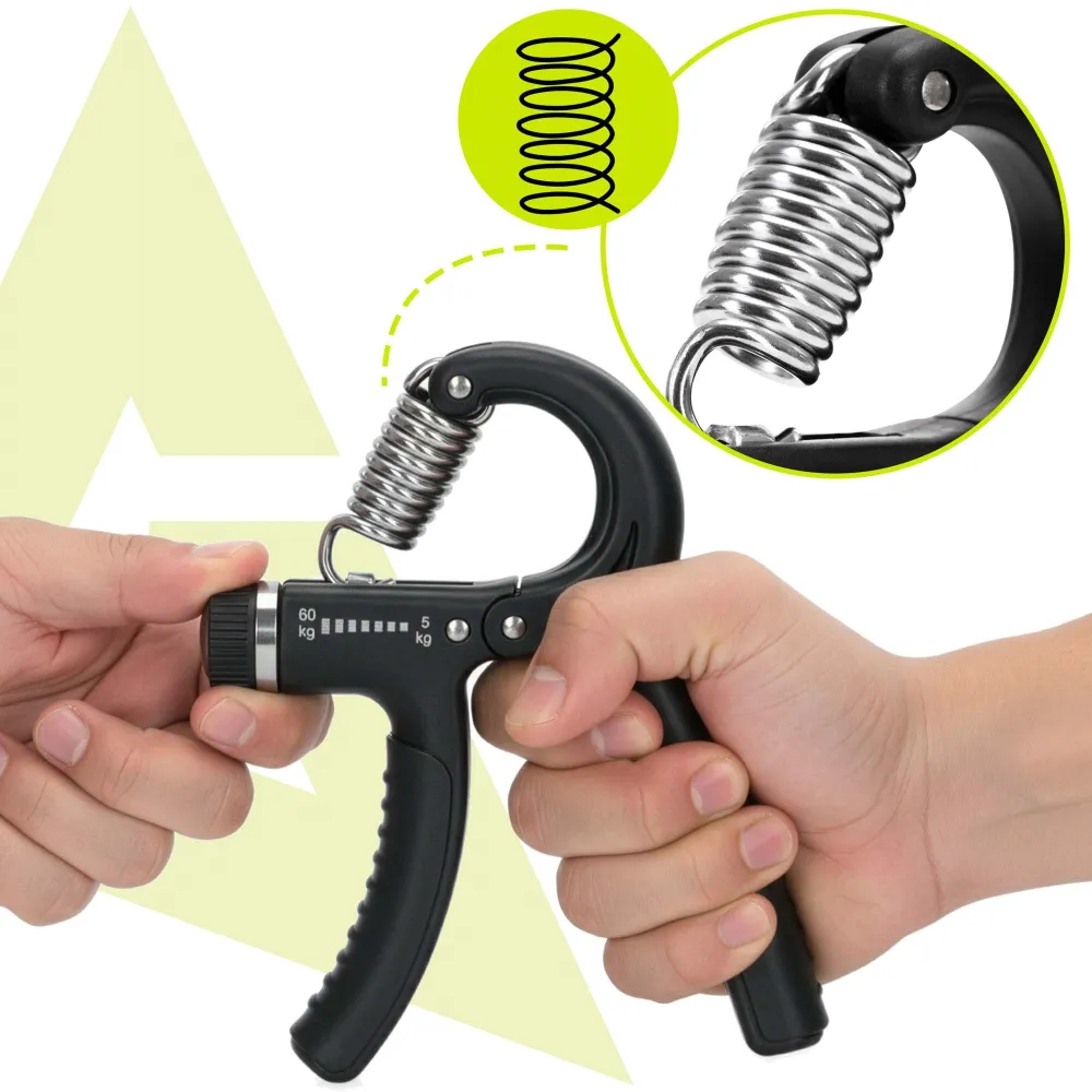 Ručný posilňovač prstov a zápästia, plne nastaviteľný odpor 5–60 kg, ergonomické protišmykové rukoväte pre pohodlný a istý úchop, optimálnu veľkosť na jednoduché používanie doma aj na cestách, odolné materiály pre dlhú životnosť. Vhodný pre silový tréning, zlepšenie úchopu aj rehabilitáciu po zranení. Pomáha posilňovať prsty, dlaň aj zápästie.
