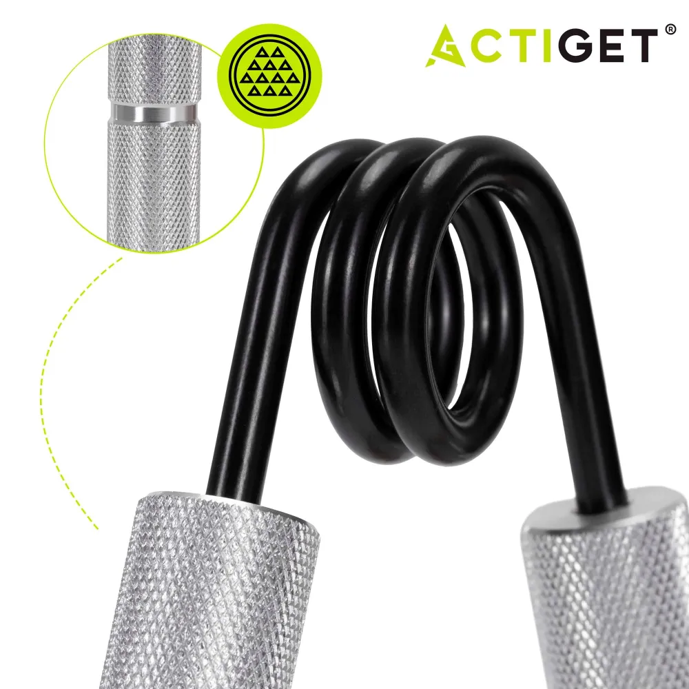 Pomôcka je vybavená oceľovou 34 mm pružinou , ktorá zaisťuje stabilný a dlhodobo spoľahlivý odpor. Hliníkové protišmykové rukoväte poskytujú istý a pohodlný úchop aj pri intenzívnom cvičení. Vďaka kompaktnej veľkosti ju ľahko vezmete so sebou kamkoľvek a môžete trénovať doma, v práci aj na cestách.