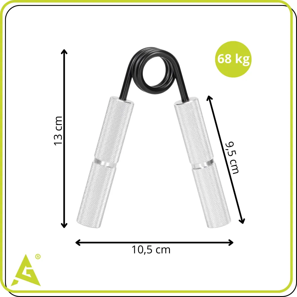 Posilňovač rúk, zápästia a predlaktia. Vhodný ako na silový tréning, tak na rehabilitáciu. Oceľová 34 mm pružina pre pevný a stabilný odpor. Hliníkové protišmykové rukoväte pre istý úchop. Kompaktná veľkosť pre ľahké prenášanie a cvičenie kdekoľvek.