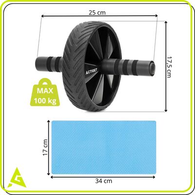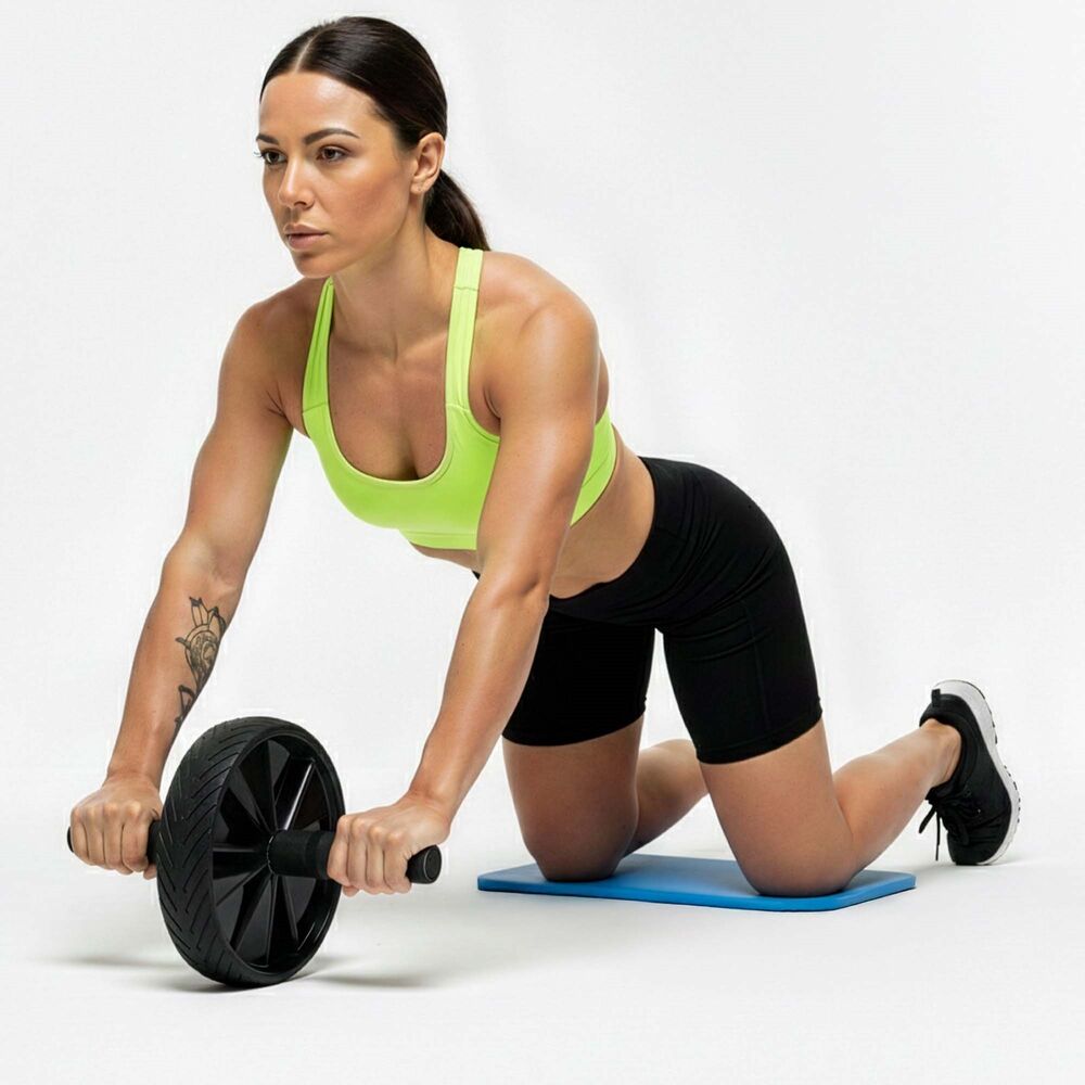 Koliesko je vybavené ergonomickými rukoväťami s penovým poťahom , ktoré zaisťujú pohodlný a istý úchop aj pri náročnejšom cvičení. Gumový behúň kolieska výrazne zvyšuje trakciu a stabilitu na rôznych typoch povrchov. Súčasťou balenia je aj ochranná podložka na kolená , ktorá zvyšuje komfort pri cvičení. Konštrukcia s nosnosťou až 100 kg zaručuje spoľahlivosť a bezpečné používanie.