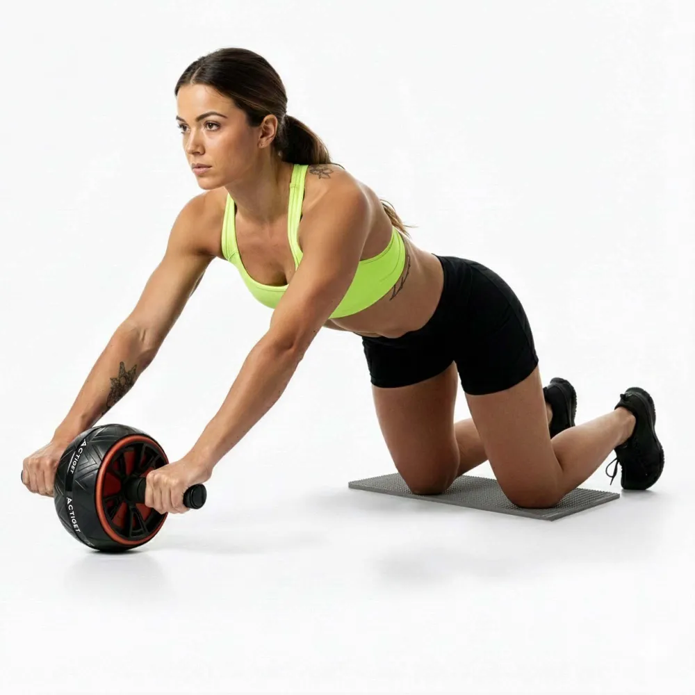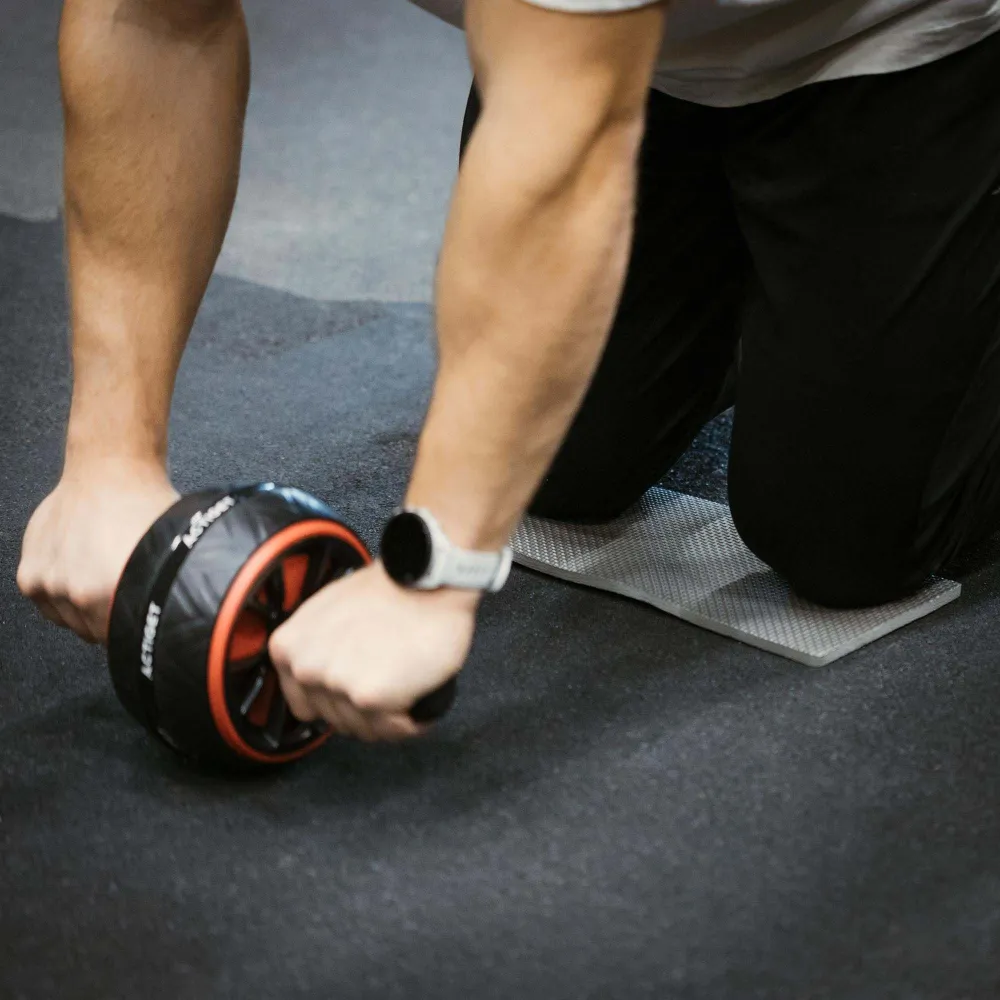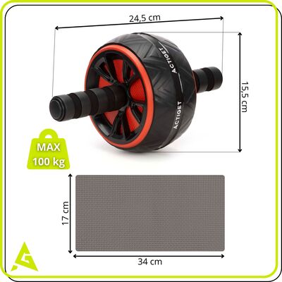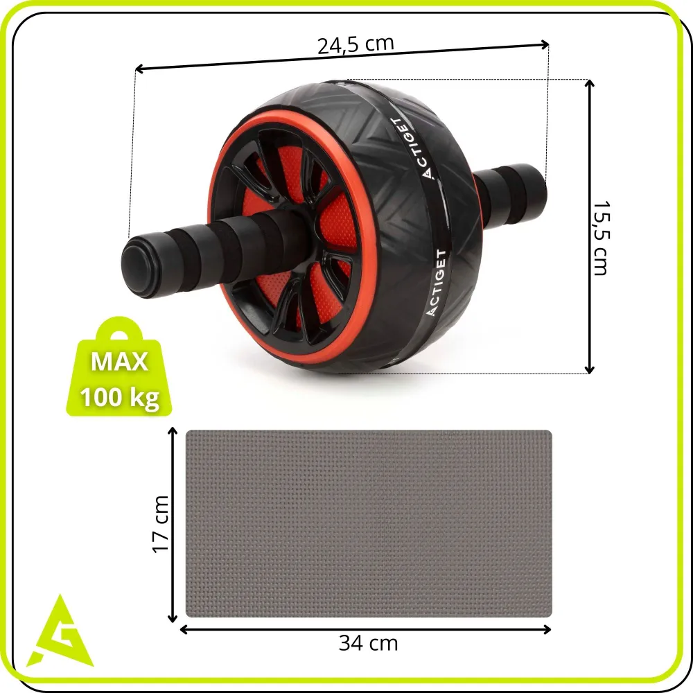 Koliesko je vybavené ergonomickými rukoväťami s penovým poťahom , ktoré zaisťujú pohodlný a istý úchop aj pri náročnejšom cvičení. Gumový behúň kolieska výrazne zvyšuje trakciu a stabilitu na rôznych typoch povrchov. Súčasťou balenia je aj ochranná podložka na kolená , ktorá zvyšuje komfort pri cvičení. Konštrukcia s nosnosťou až 100 kg zaručuje spoľahlivosť a bezpečné používanie.