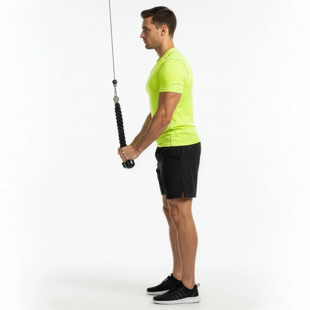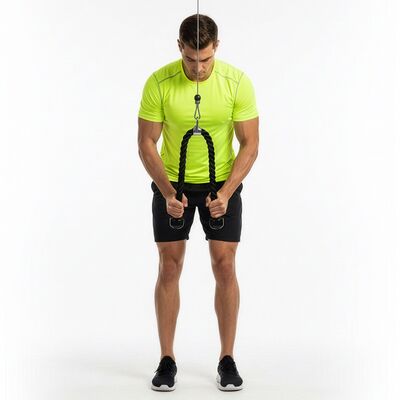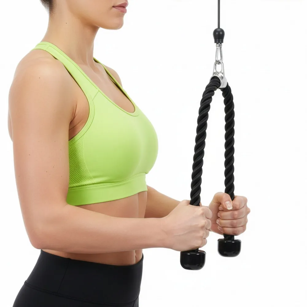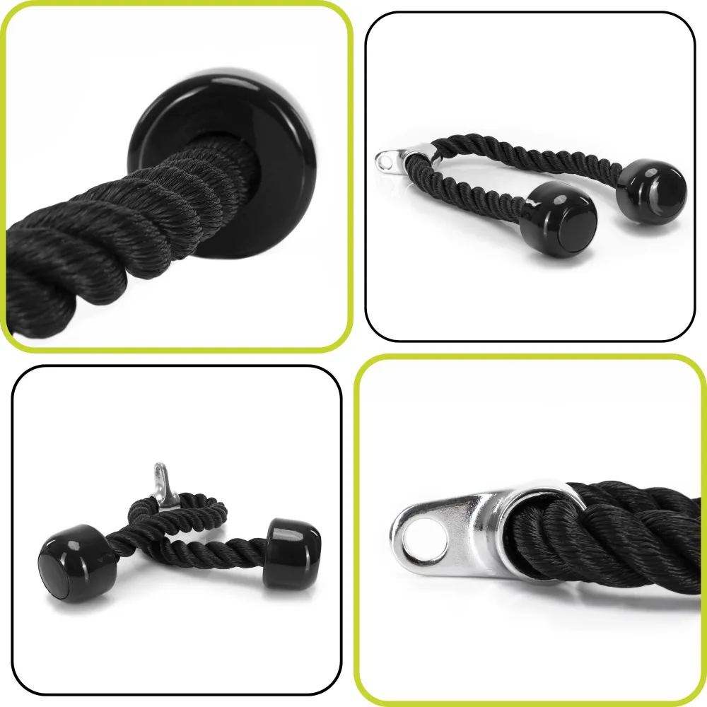 Základom je robustný oceľový hák , ktorý zaručuje pevné a bezpečné uchytenie ku kladke aj pri vysokej záťaži. Rukoväte majú bezpečné protišmykové úchopy , takže sa nešmýkajú ani pri intenzívnom cvičení a spotených dlaniach. Vďaka tomu máte vždy istý stisk a plnú kontrolu nad pohybom. Celkové prevedenie dopĺňa moderný športový vzhľad , ktorý zapadne do každej posilňovne.