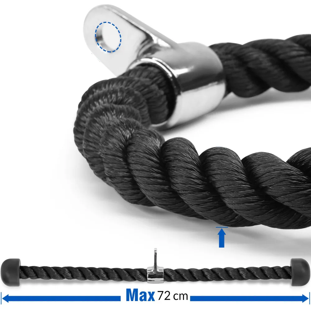 Posilňovacie crossfit lano pre intenzívny vytrvalostný tréning. Silná a pevná väzba, dlhá životnosť, spevenené rukoväte. Dĺžka 9 m, priemer...