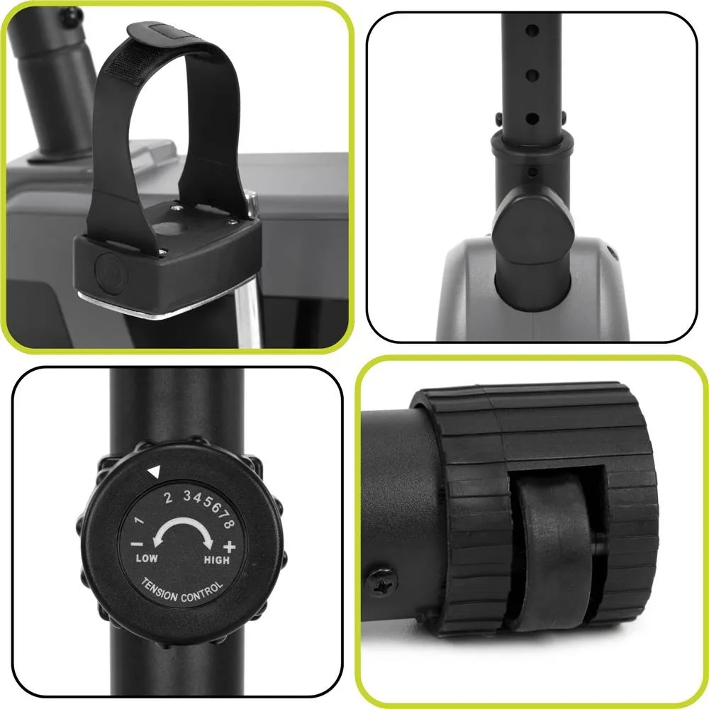Rotoped je plne nastaviteľný , takže si ho ľahko prispôsobia rôzni používatelia. K dispozícii je 8 úrovní odporu , ktoré umožňujú voliť ľahký tréning aj náročnejšiu záťaž. Pohodlné sedlo a protišmykové pedále zvyšujú komfort pri dlhšom cvičení a podporujú správnu polohu tela.