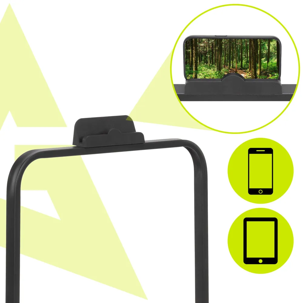 Pre bezpečný pohyb slúži protišmyková bežecká plocha . Praktickým doplnkom je držiak telefónu a transportné kolieska pre ľahké premiestnenie. Pás má nosnosť 110 kg a spĺňa certifikácie CE a RoHS , ktoré potvrdzujú jeho bezpečnosť a kvalitu.