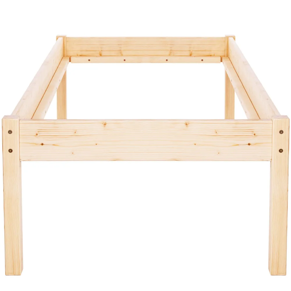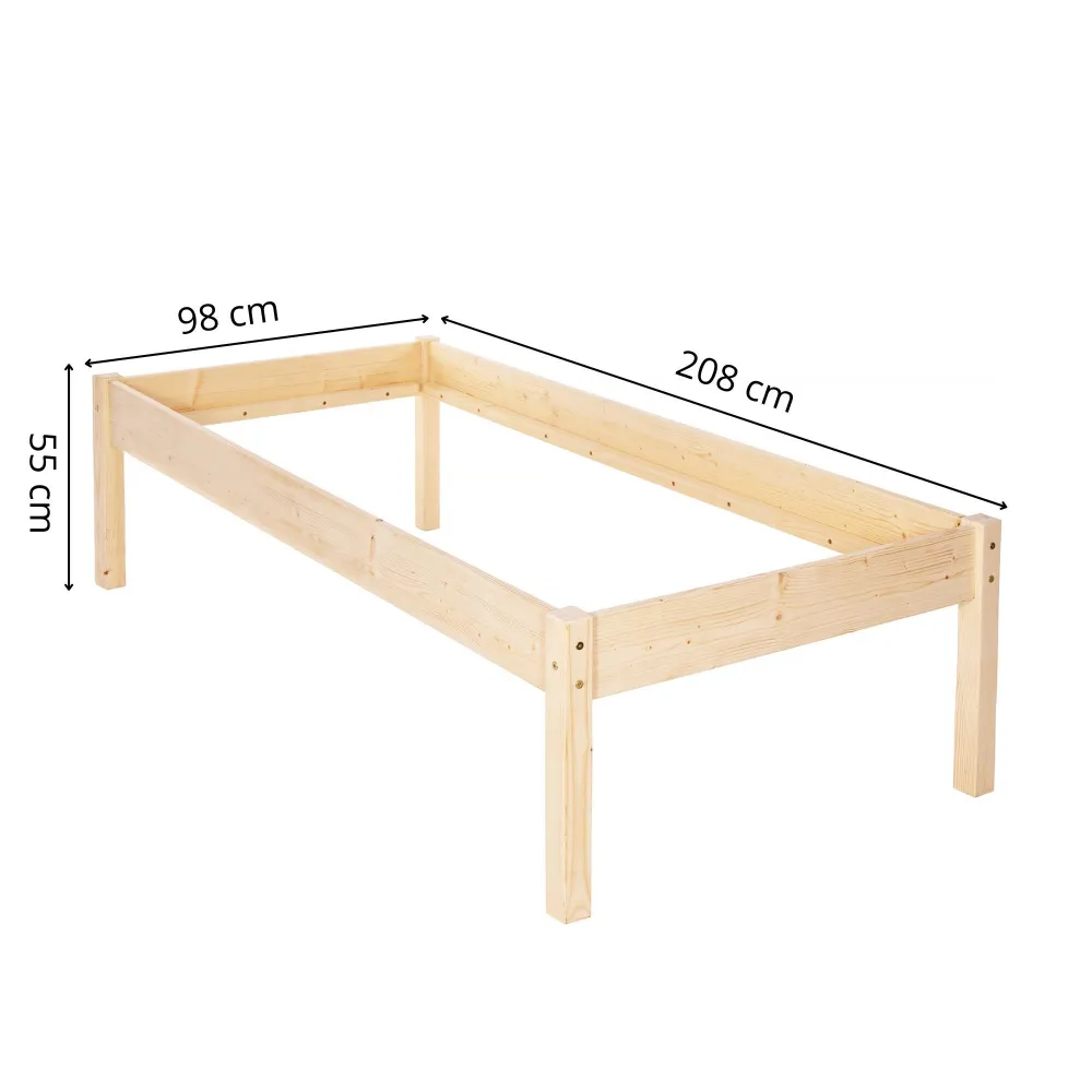 Jednolôžková posteľ z masívneho dreva v prírodnom prevedení zaujme elegantnými tvarmi a nadčasovým dizajnom. Stabilný rám je určený pre matrac s rozmermi 90x200 cm. Vďaka vyvýšenej konštrukcii ponúka pohodlné vstávanie aj lepšiu cirkuláciu vzduchu pod lôžkom. Celkové rozmery 98x208x55 cm.