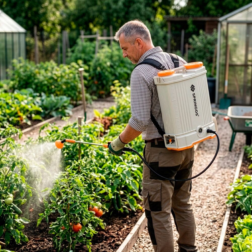Akumulátorový postrekovač na starostlivosť o záhradu a rastliny. Slúži na pohodlnú aplikáciu vody, hnojív i postrekov bez nutnosti ručného pumpovania.