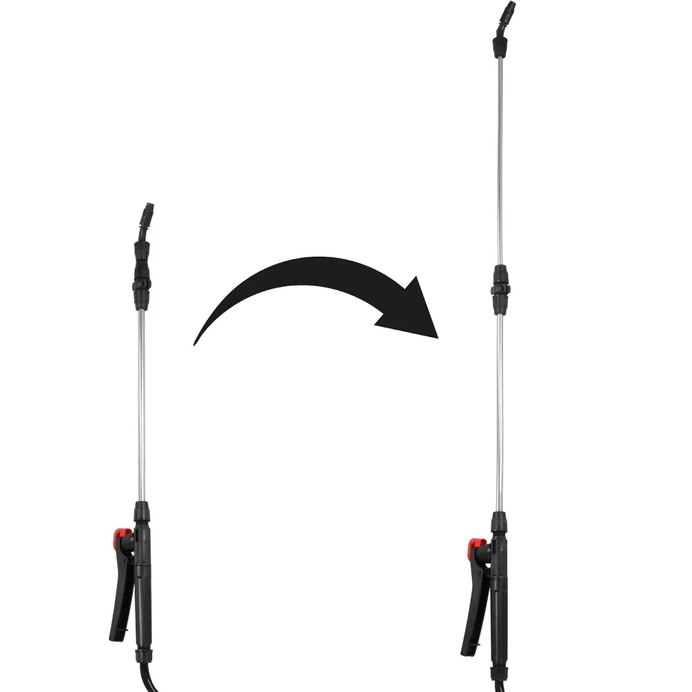 Kovová teleskopická postrekovacia tyč s nastaviteľnou dĺžkou v rozmedzí od 45 do 88 cm umožňuje presné smerovanie postreku aj do horšie dostupných miest. Vrátane rukoväte je postrekovacia tyč dlhá 110 cm a zaistí tak dostatočný dosah aj pre vyššie rastliny a stromy. Ručný rozprašovač sa ľahko ovláda a vďaka ergonomickej rukoväti poskytuje komfort aj pri dlhodobom používaní.