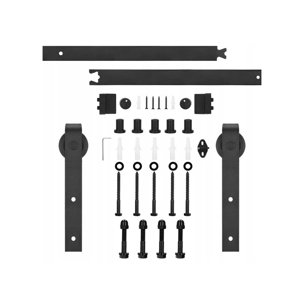 Kompletná sada kovania a príslušenstva na montáž posuvných dverí. Dĺžka koľajnice 183 cm, nosnosť 100 kg, odporúčaná hrúbka dverí 35-45 mm. Tichý a plynulý chod. Štýlový dizajn, kvalitné materiály, jednoduchá inštalácia svojpomocne.