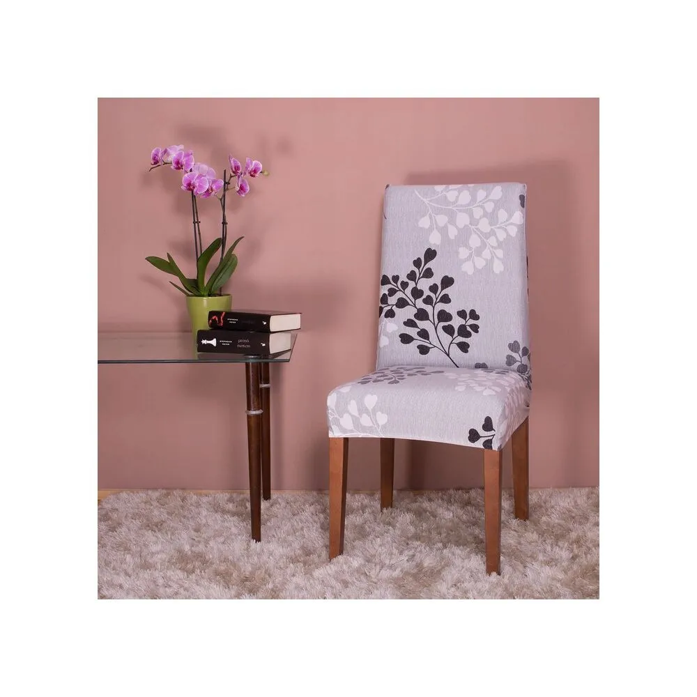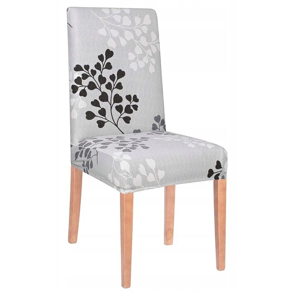 Moderný poťah na stoličke so vzorom vetvičiek s listami. Univerzálna veľkosť vhodná pre väčšinu stoličiek. Príjemný a hebký materiál s prímesou Spandexu.