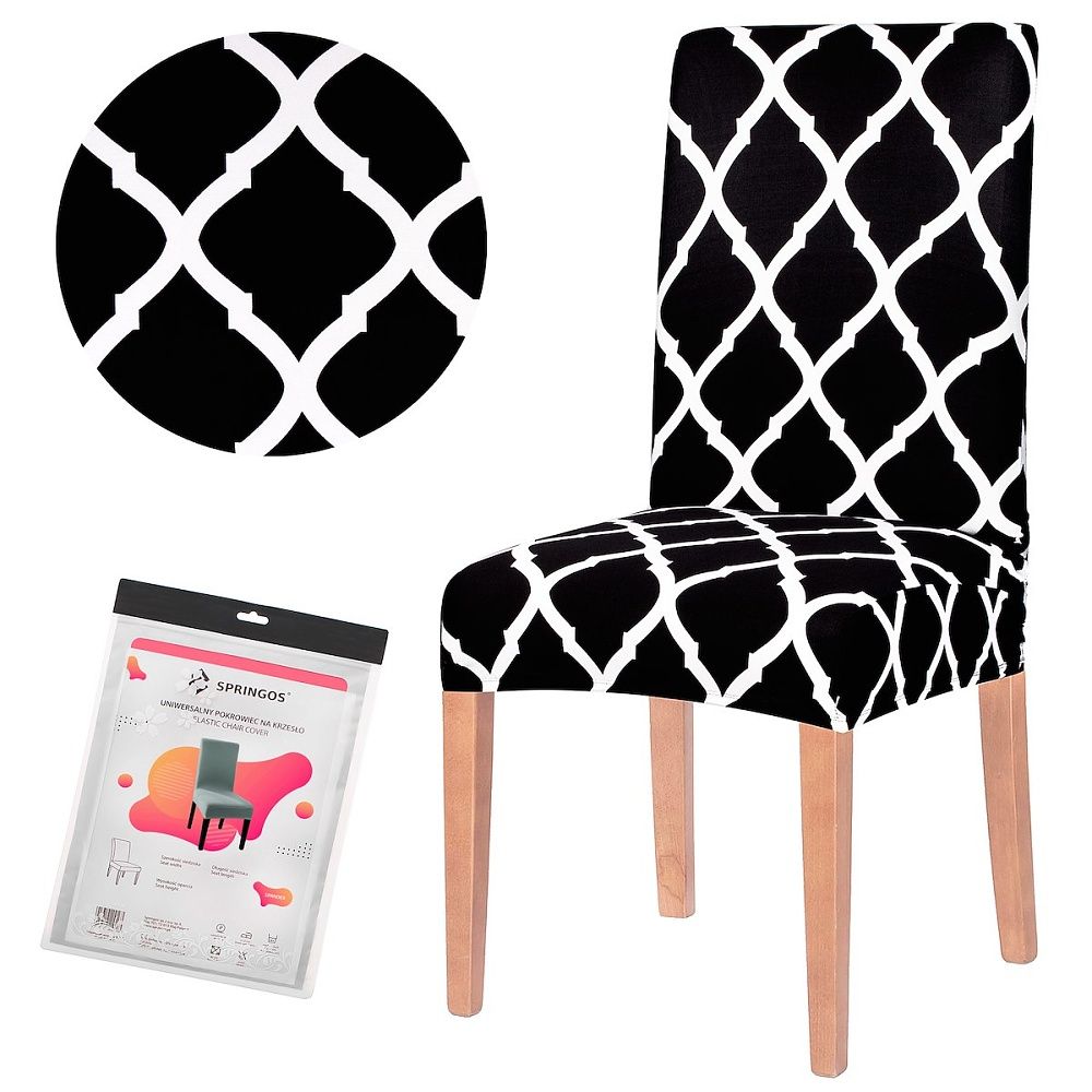Moderný poťah na stoličku s marockým vzorom. Univerzálna veľkosť vhodná pre väčšinu stoličiek. Príjemný a hebký materiál s prímesou Spandexu.