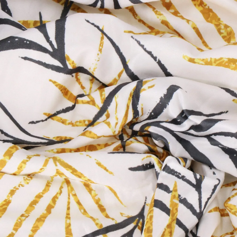 Elastický poťah na stoličku so vzorom listov v čierno-žltej farbe. Napínací a univerzálny, vhodný pre všetky typy stoličiek. Vyrobený z príjemného a odolného materiálu. Jednoduché nasadenie a jednoduchá údržba. Elegantný vzhľad pre každú domácnosť.