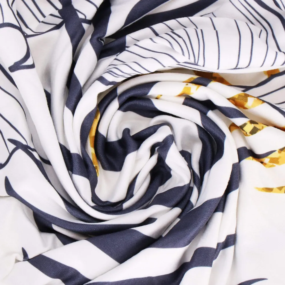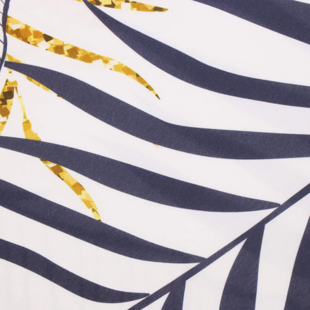 Elastický poťah na stoličke so vzorom listov v odtieňoch modrej a žltej. Napínací a univerzálny, vhodný pre všetky typy stoličiek. Vyrobený z príjemného a odolného materiálu. Jednoduché nasadenie a jednoduchá údržba. Elegantný vzhľad pre každú domácnosť.